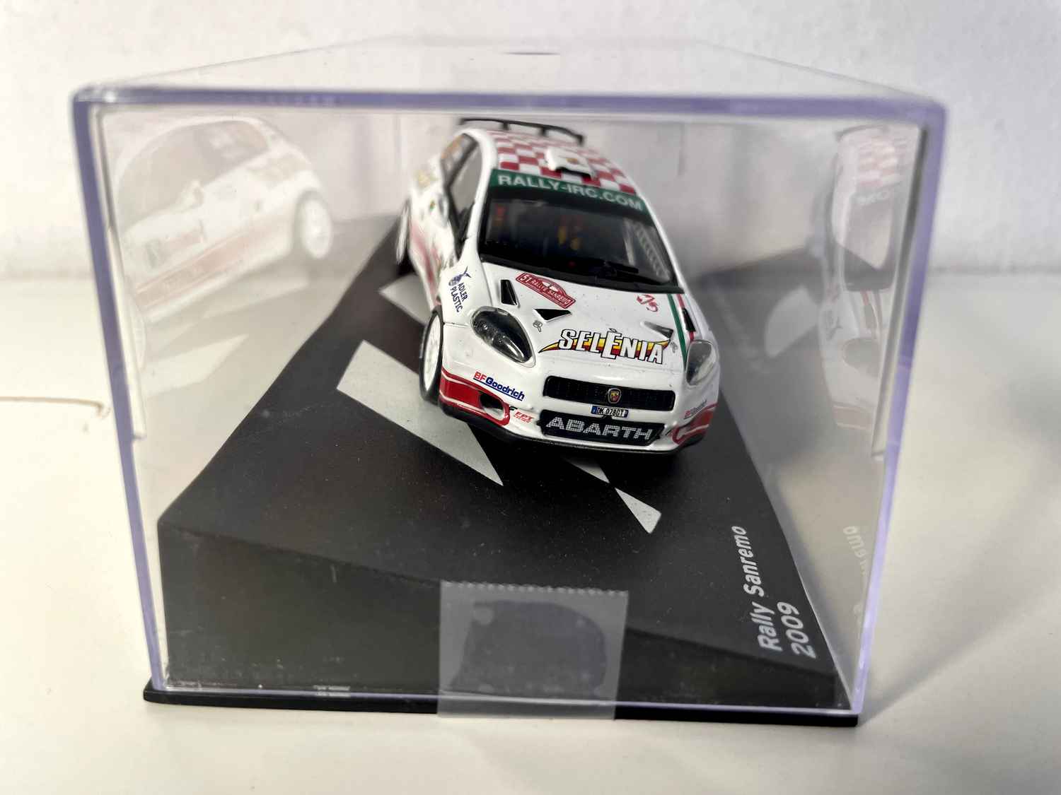 Voiture Miniature Fiat Abarth Grande Punto S2000 blanche et rouge numéro 2 - Rallye de San-Rémo de 2009