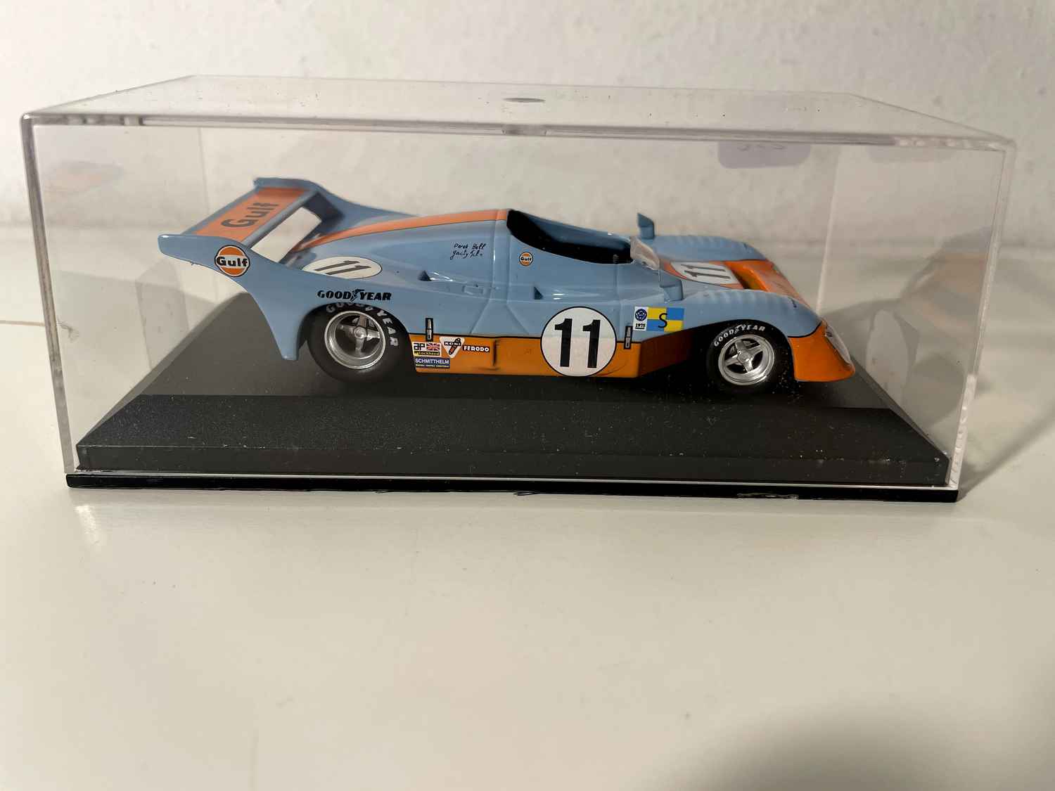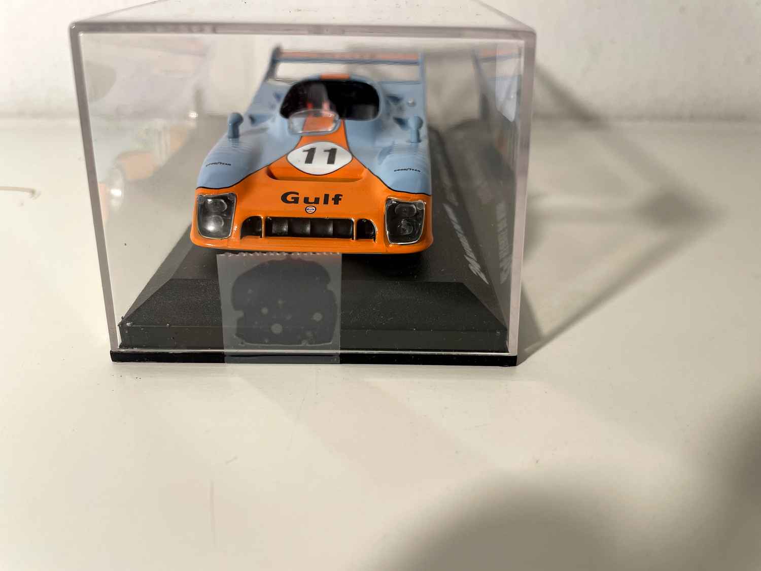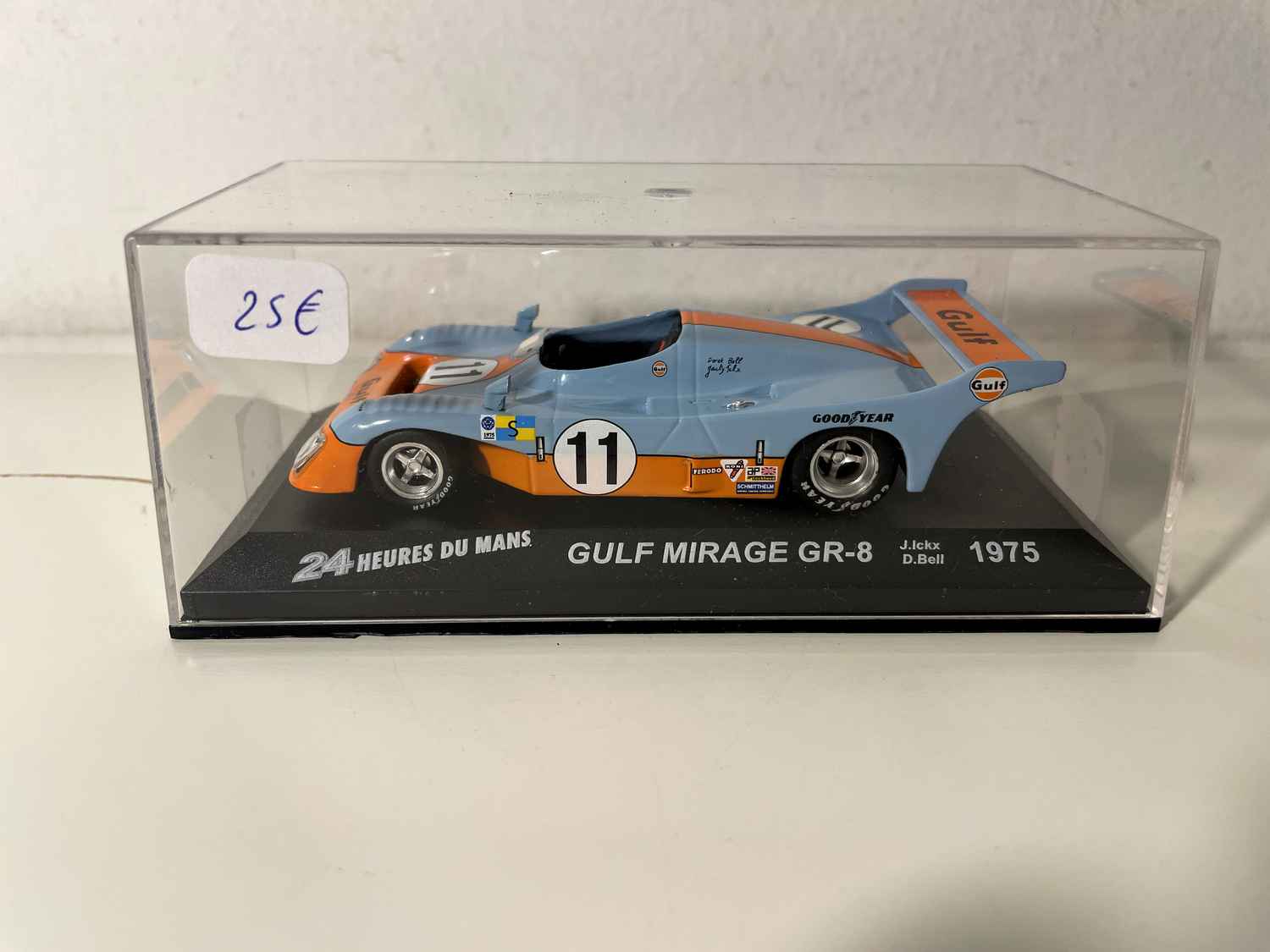 Voiture Miniature Gulf Mirage GR-8 bleue et orange (couleurs de GULF) numéro 11 - 24 heures du Mans de 1975
