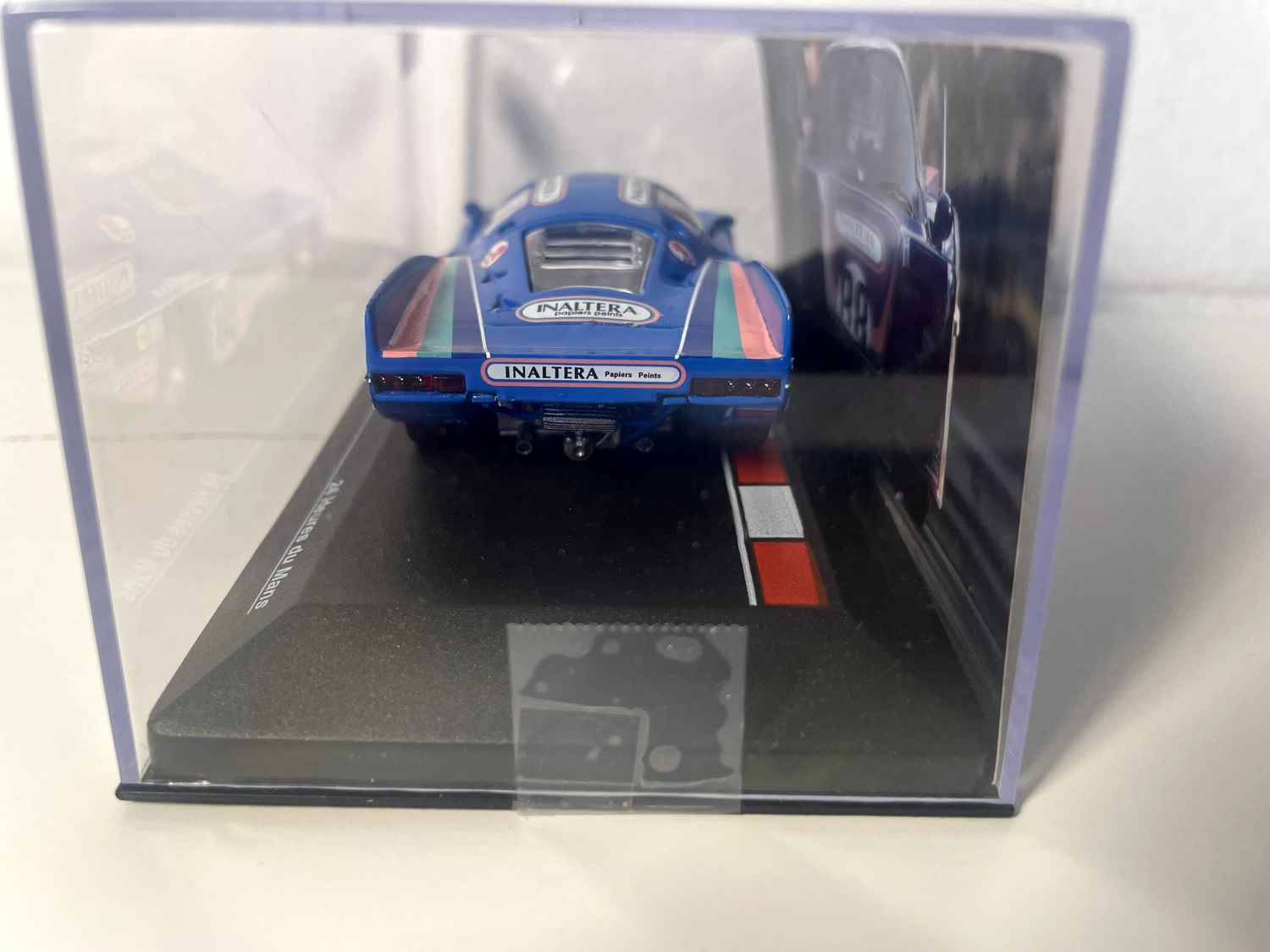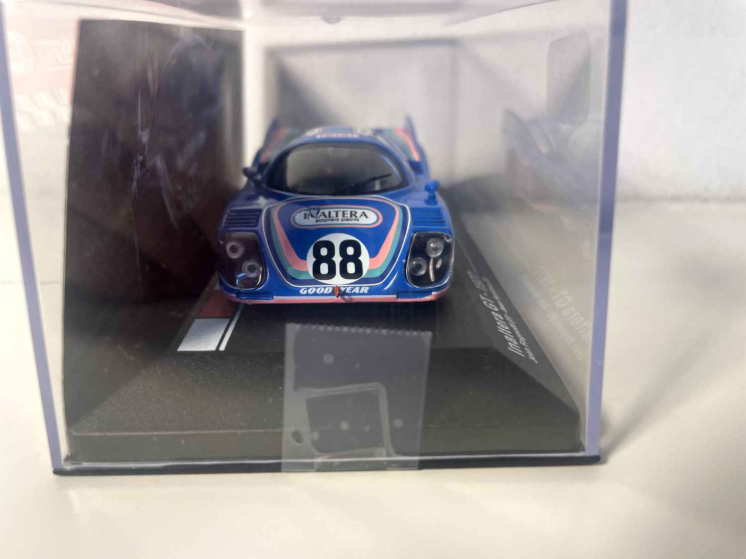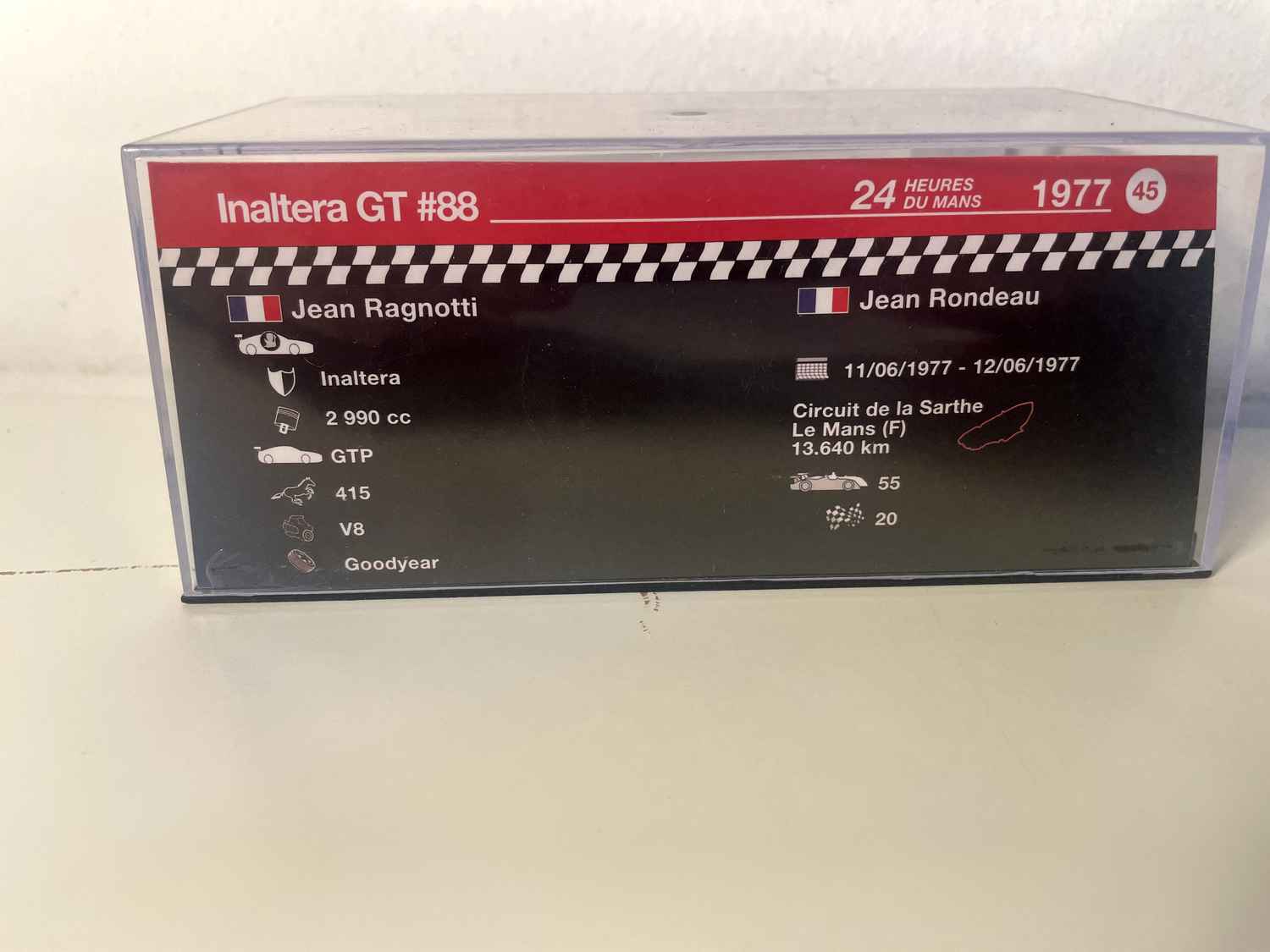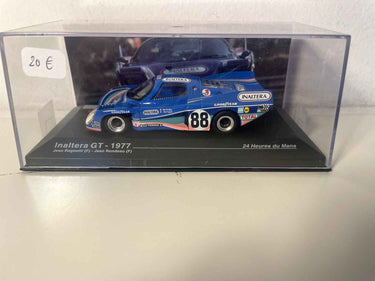 Découvrez cette magnifique miniature Inaltera GT numéro 88 dans sa livrée bleue caractéristique des 24 heures du Mans 1977. Cette reproduction fidèle capture l'esprit de compétition et l'élégance de ce prototype français qui marqua l'histoire de l'endurance automobile.