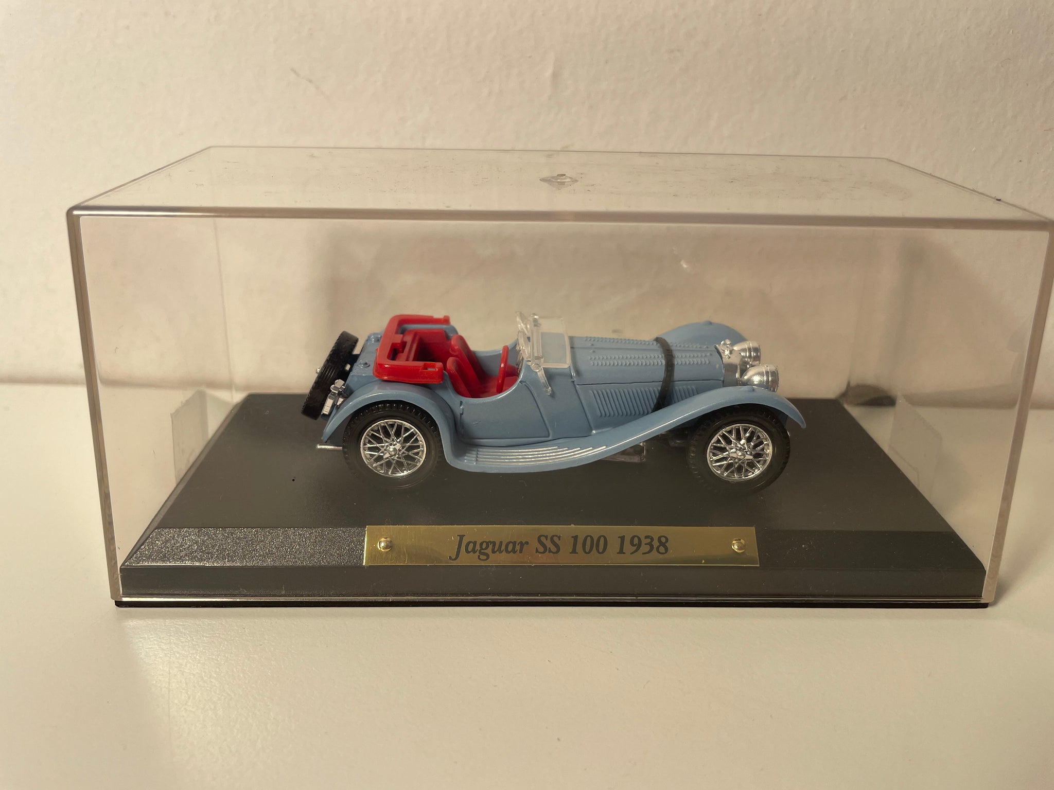 Voiture Miniature Jaguar SS 100 bleue de 1938 (collection Voitures d'exception)