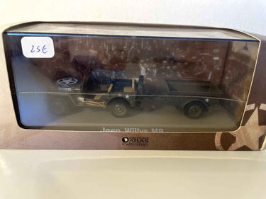 Voiture Miniature Jeep Willys MB et sa remorque de la 2ème DB - Atlas