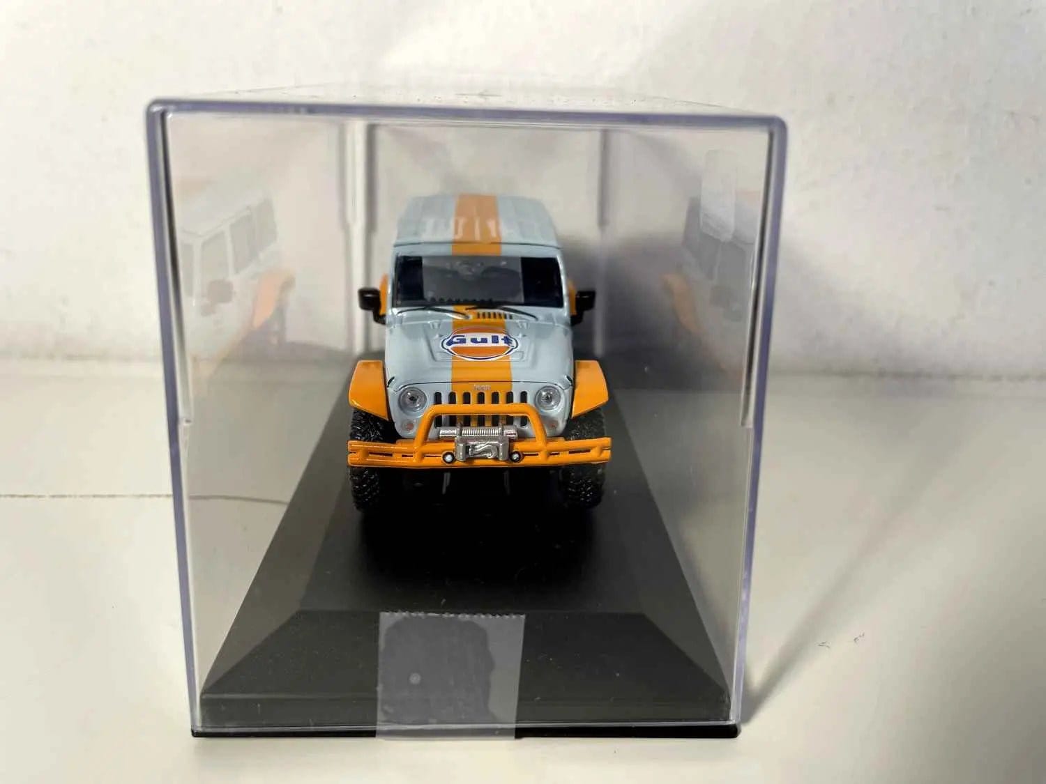 Voiture Miniature Jeep Wrangler aux couleurs de GULF (bleue et orange) de 2015