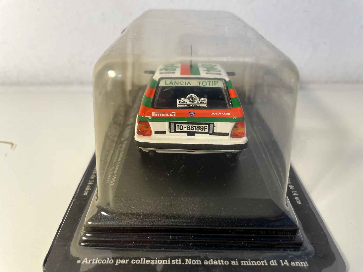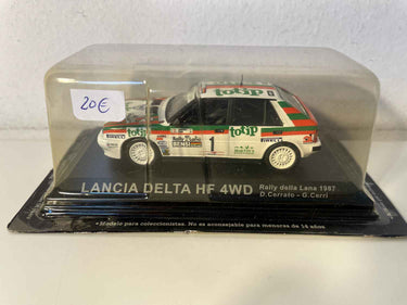 Voiture Miniature Lancia Delta HF 4WD blanche, rouge et verte numéro 1 - rallye Della Lana (Italie) de 1987
