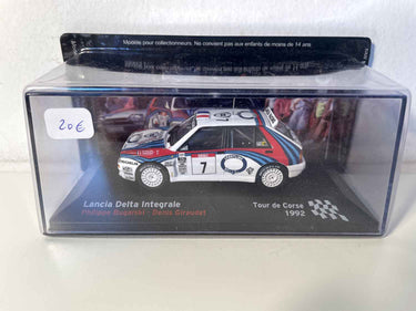 Voiture Miniature Lancia Delta Intégrale blanche, bleue et rouge numéro 7 - tour de Corse 1992