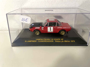 Voiture Miniature Lancia Fulvia 1.6 coupé HF rouge et noire numéro 1 rallye du Maroc de 1972 (collection Rally Car)