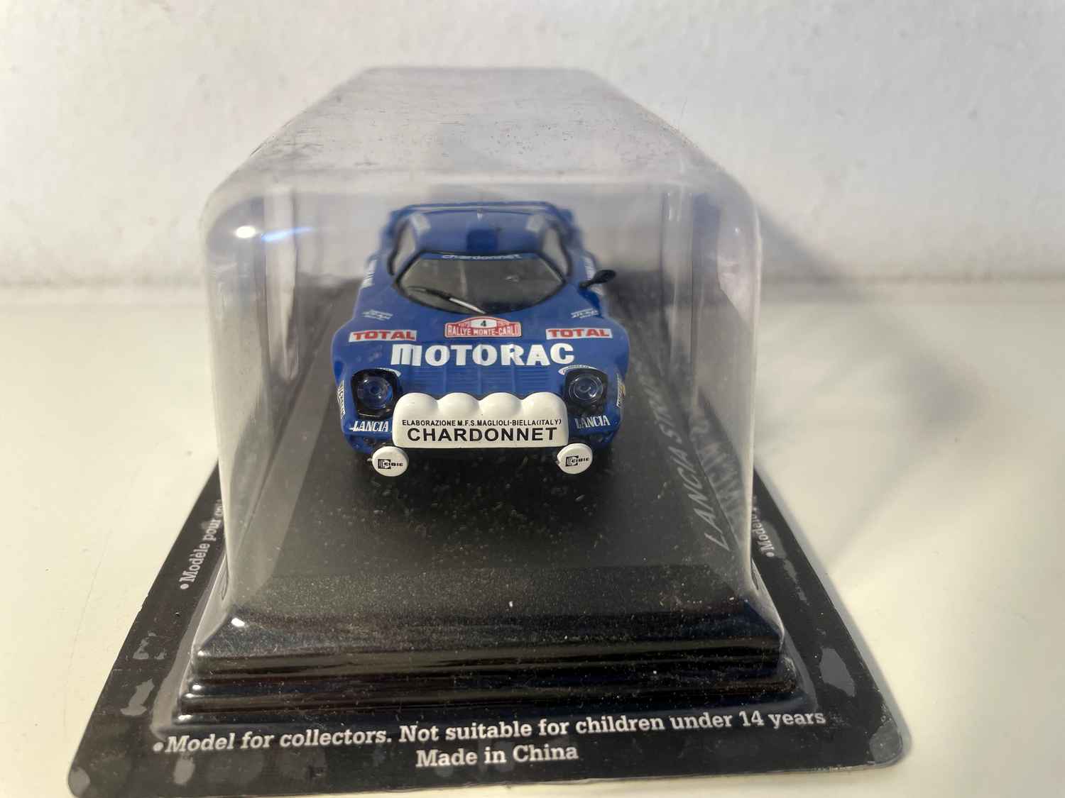Voiture Miniature Lancia Stratos bleue numéro 4 - rallye de Monté-Carlo de 1979
