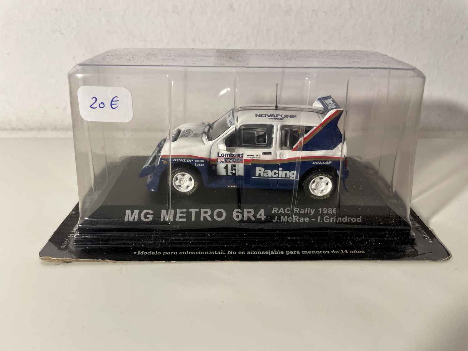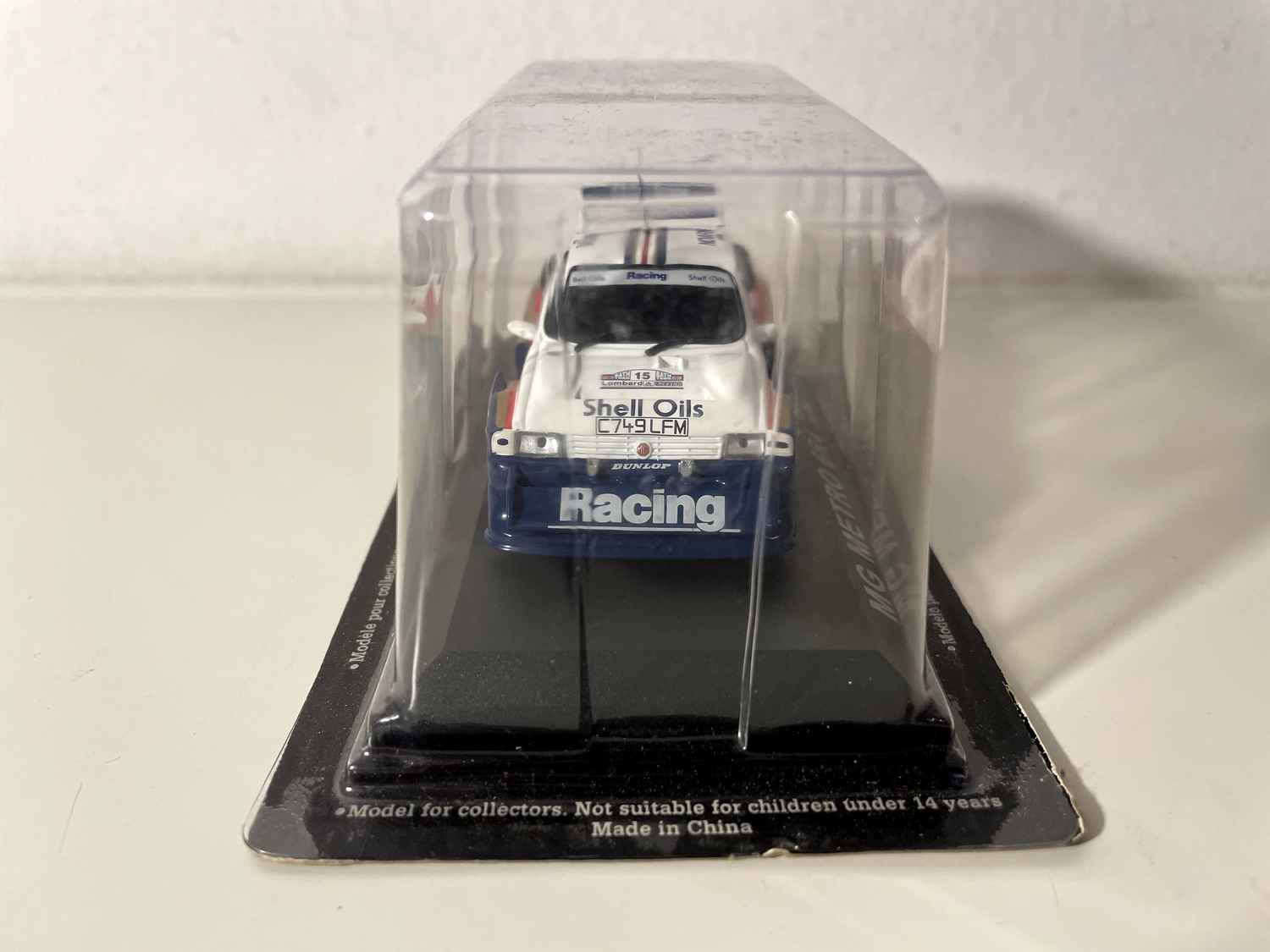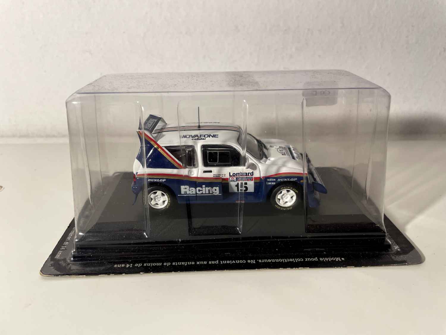 Voiture Miniature MG Métro 6R4 bleue et blanche numéro 15 - RAC rallye de 1986 (rallye de Grande-Bretagne)