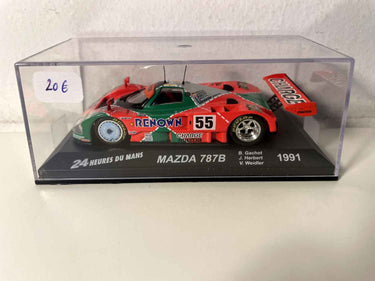Découvrez cette miniature de la Mazda 787B dans sa légendaire livrée orange et verte, arborant le numéro 55 des 24 Heures du Mans 1991. Cette réplique fidèle capture l'essence d'un des prototypes les plus iconiques de l'histoire de l'endurance automobile, pilotée par le trio Bertrand Gachot, Johnny Herbert et Volker Weidler.
