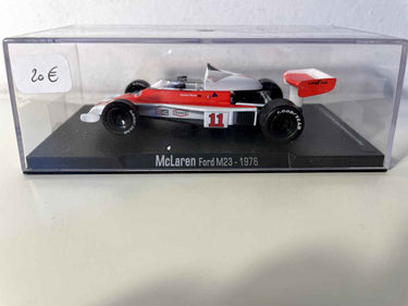 Cette McLaren M23 orange et blanche s'intègre parfaitement dans toute collection dédiée à la Formule 1 ou aux modèles McLaren. Sa livrée iconique et son histoire prestigieuse en font une pièce incontournable pour les passionnés d'automobiles de course. Que vous soyez collectionneur confirmé ou amateur d'histoire automobile, cette miniature représente un témoignage authentique de l'excellence technique et sportive des années 1970 en championnat du monde de Formule 1.