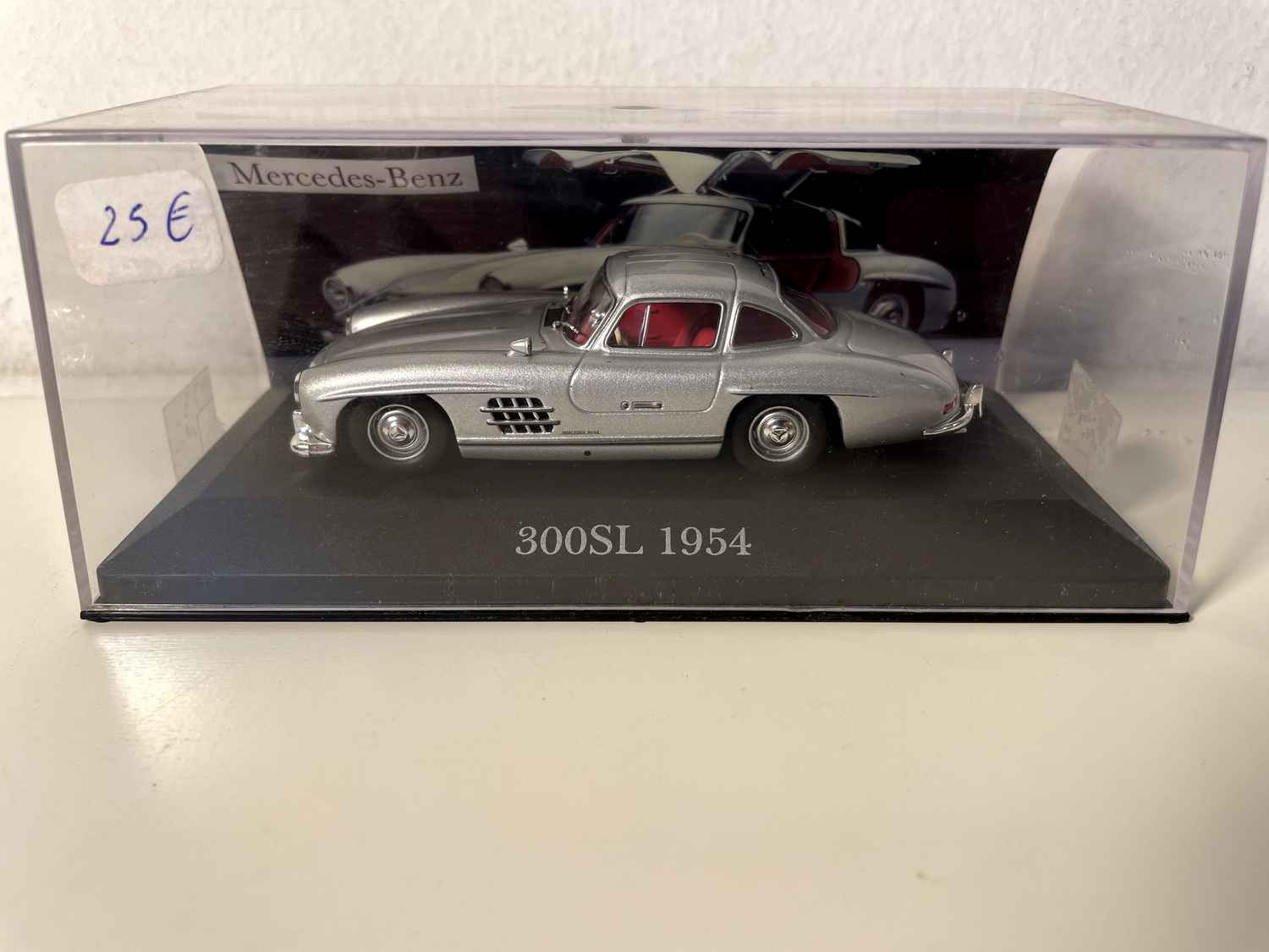 Cette Mercedes 300SL grise de 1954 trouve naturellement sa place au cœur d'une collection dédiée aux voitures miniatures Mercedes-Benz, aux côtés d'autres modèles emblématiques de la marque à l'étoile. Elle s'harmonise parfaitement avec les miniatures classiques de 1950 à 1979, période dorée de l'automobile où l'élégance rivalisait avec la performance.
