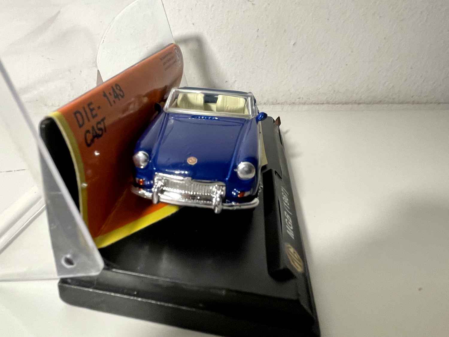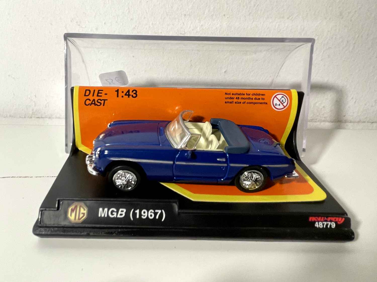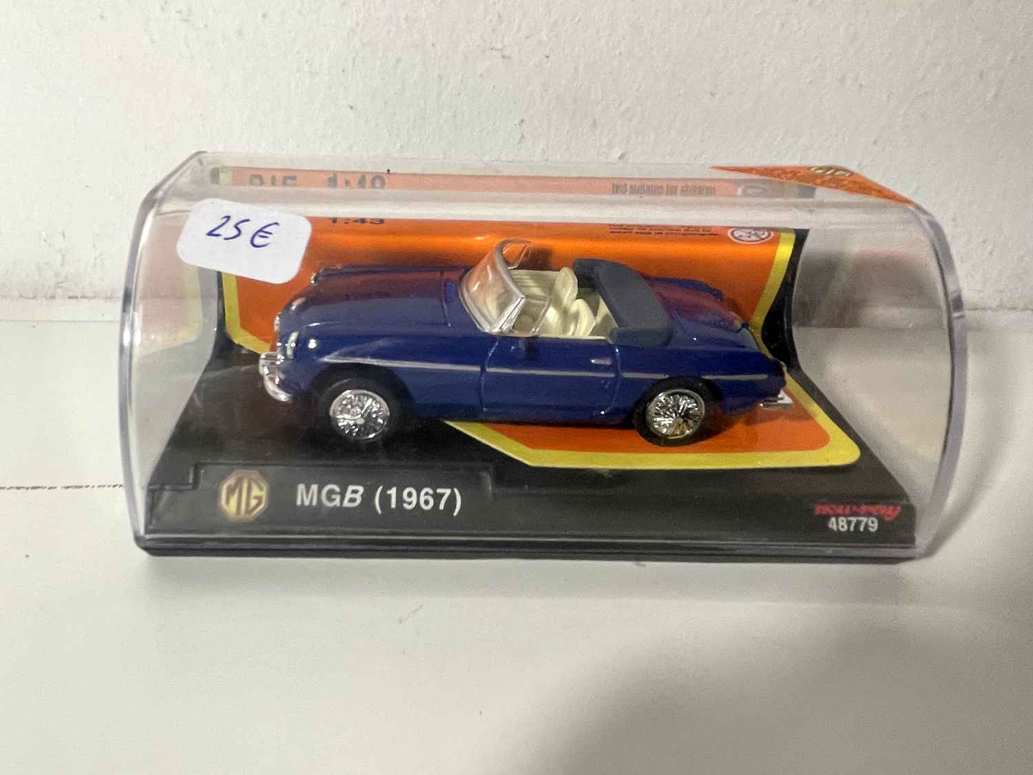 Découvrez cette magnifique reproduction de la MGB cabriolet de 1967, issue de la collection New-Ray. Cette miniature fidèle capture toute l'élégance et le charme de l'iconique roadster britannique dans sa superbe robe bleue d'époque.