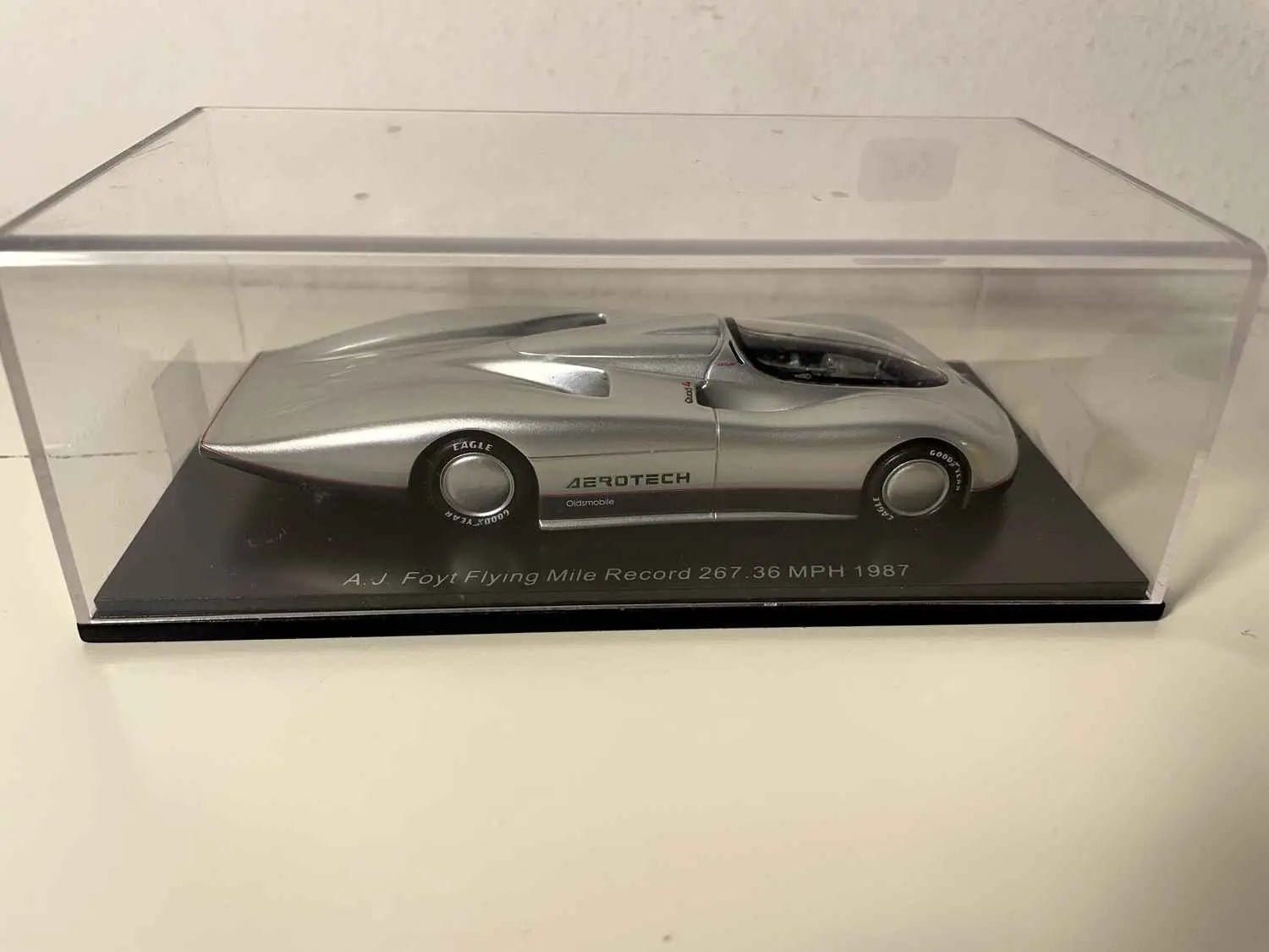 Le 29 août 1987, sur la piste d'essais de Fort Stockton au Texas, A.J. Foyt gravait son nom dans l'histoire en propulsant l'Oldsmobile Aérotech à la vitesse record de 267,36 MPH (430,36 km/h). Cette performance exceptionnelle fut réalisée lors d'un "flying mile", une épreuve consistant à maintenir la vitesse maximale sur une distance d'un mile après une phase d'accélération.