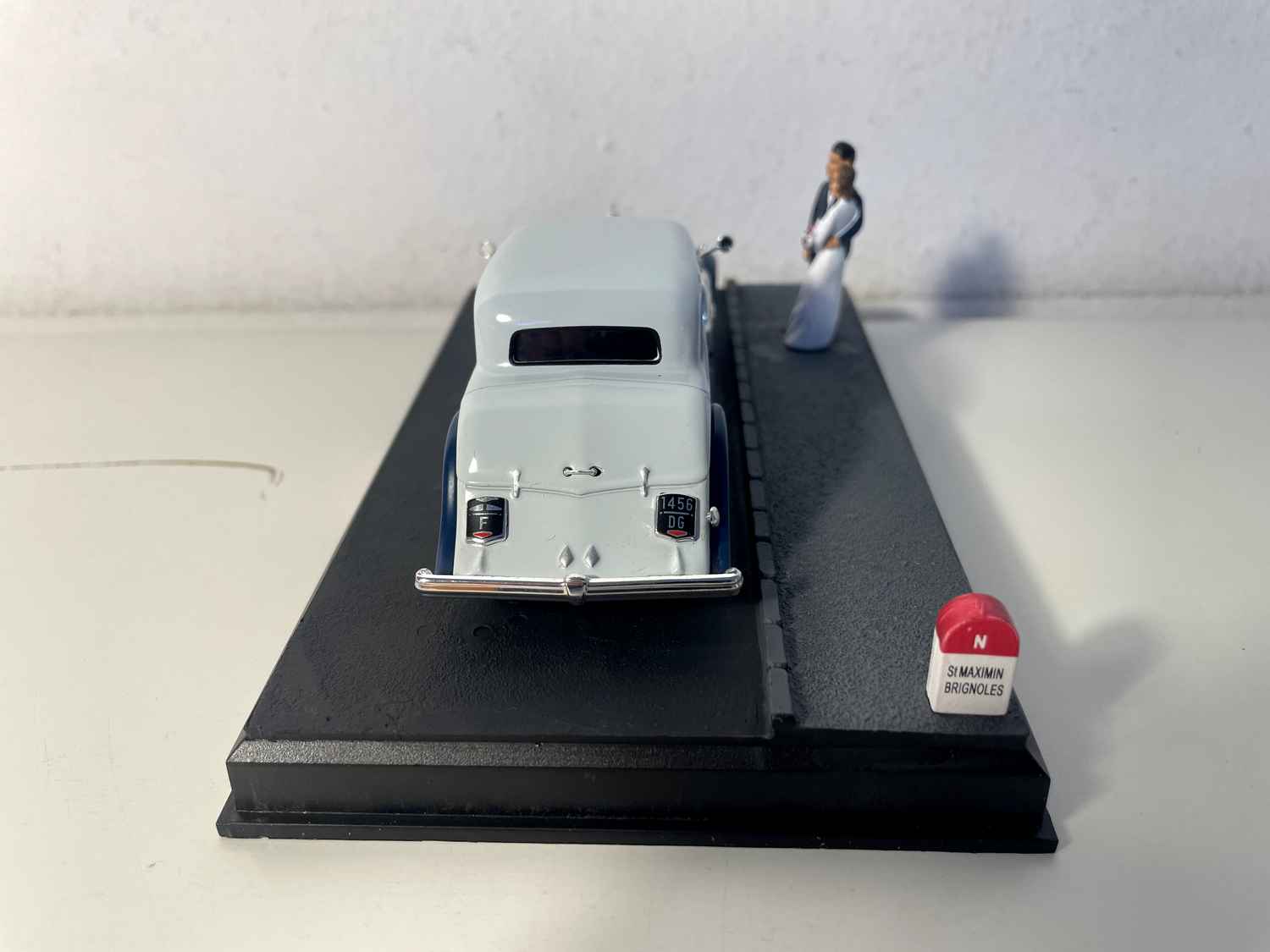 La livrée gris et bleu de cette miniature évoque les couleurs sophistiquées prisées par la clientèle distinguée de l'époque. Cette combinaison chromatique, à la fois discrète et élégante, reflète parfaitement l'esprit français des années 1930 : un raffinement assumé sans ostentation excessive, une élégance naturelle qui caractérise les plus belles productions de l'automobile française d'avant-guerre.