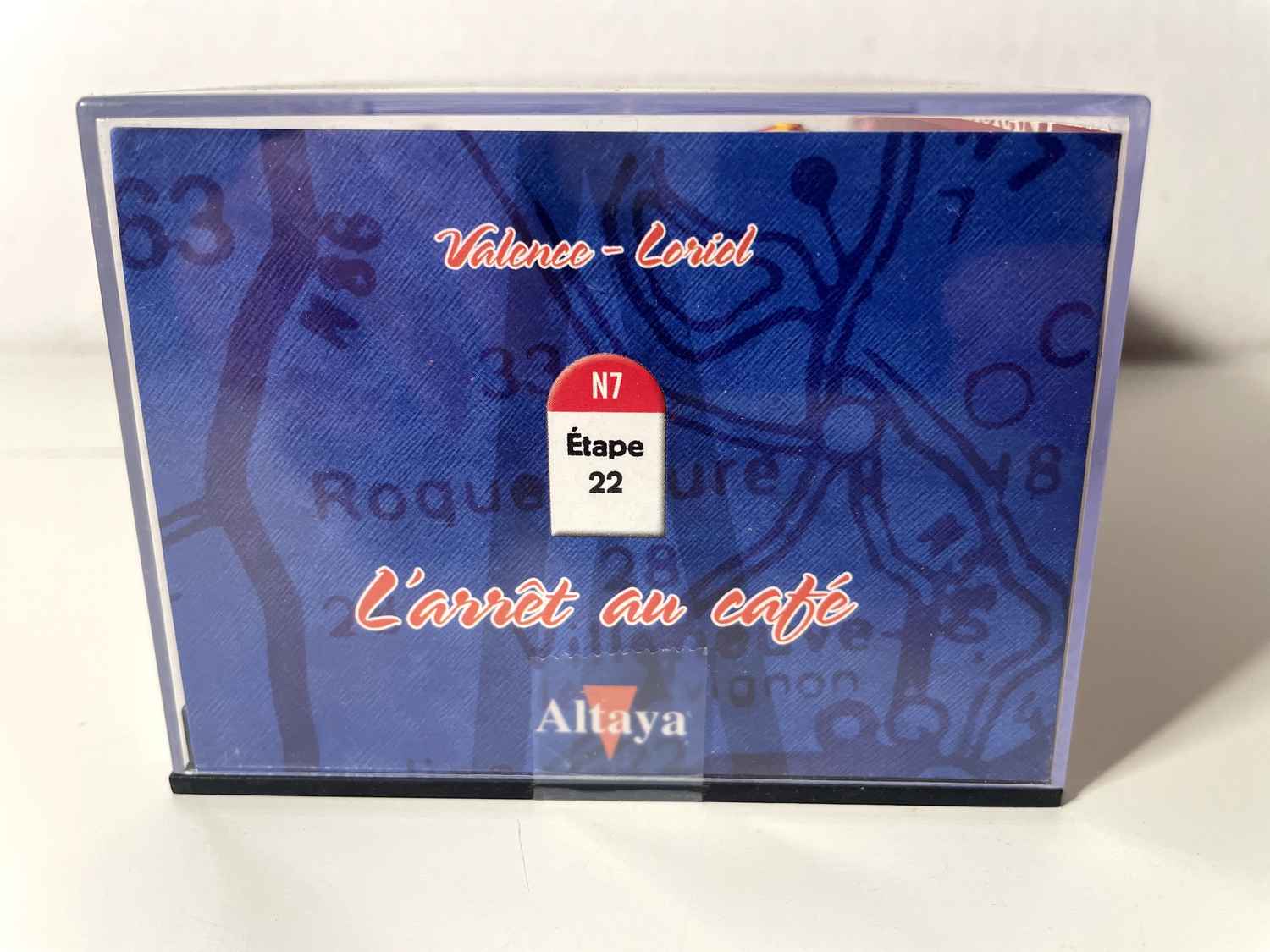 L'étape Valence - Loriol sur Drôme, que représente cette miniature, revêtait une importance particulière dans le parcours des vacanciers. Située aux portes de la Provence, cette portion de route marquait symboliquement l'entrée dans le Midi ensoleillé. Les conducteurs de Dyna Z, comme ceux des autres automobiles de l'époque, y ressentaient cette magie particulière du voyage qui transformait de simples déplacements en véritables aventures familiales.