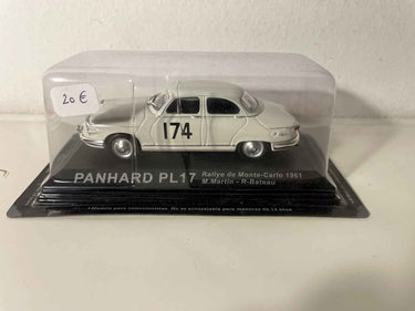 Cette magnifique Panhard PL17 blanche à l'échelle 1/43ème représente un moment emblématique du rallye de Monte-Carlo de 1961. Portant fièrement le numéro 174, cette miniature reproduit fidèlement le véhicule piloté par M. Martin et R. Bateau lors de cette édition légendaire de l'épreuve monégasque.