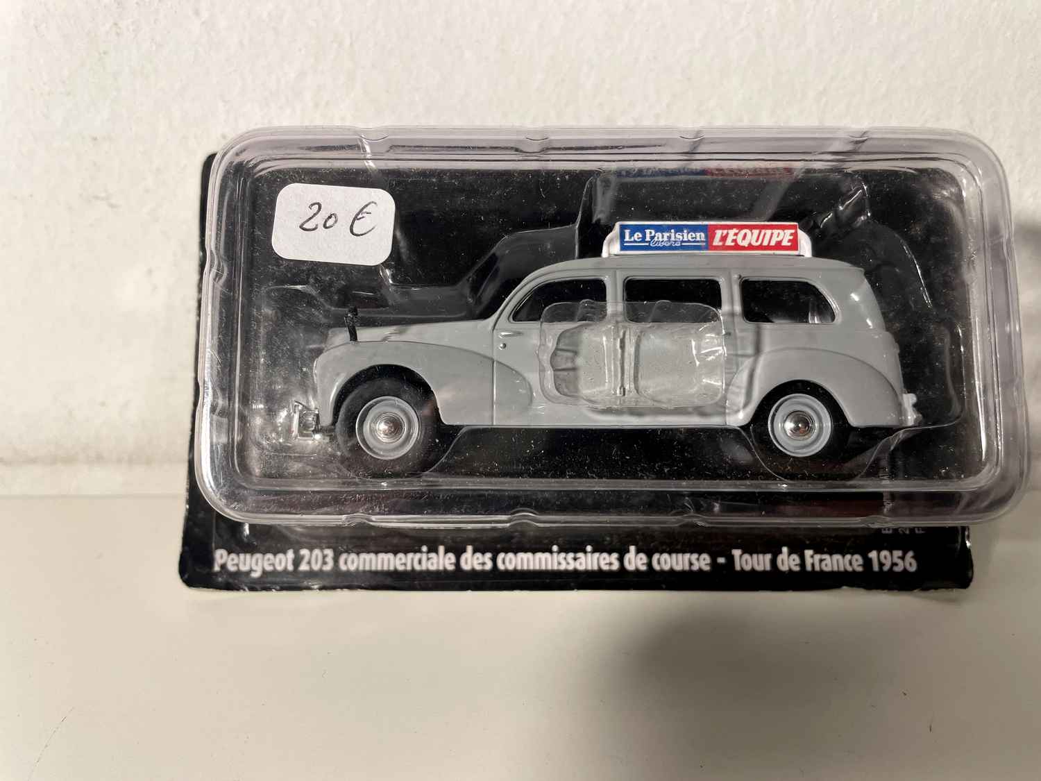 Voiture Miniature Peugeot 203 commerciale grise des commissaires de course du Tour de France de 1956