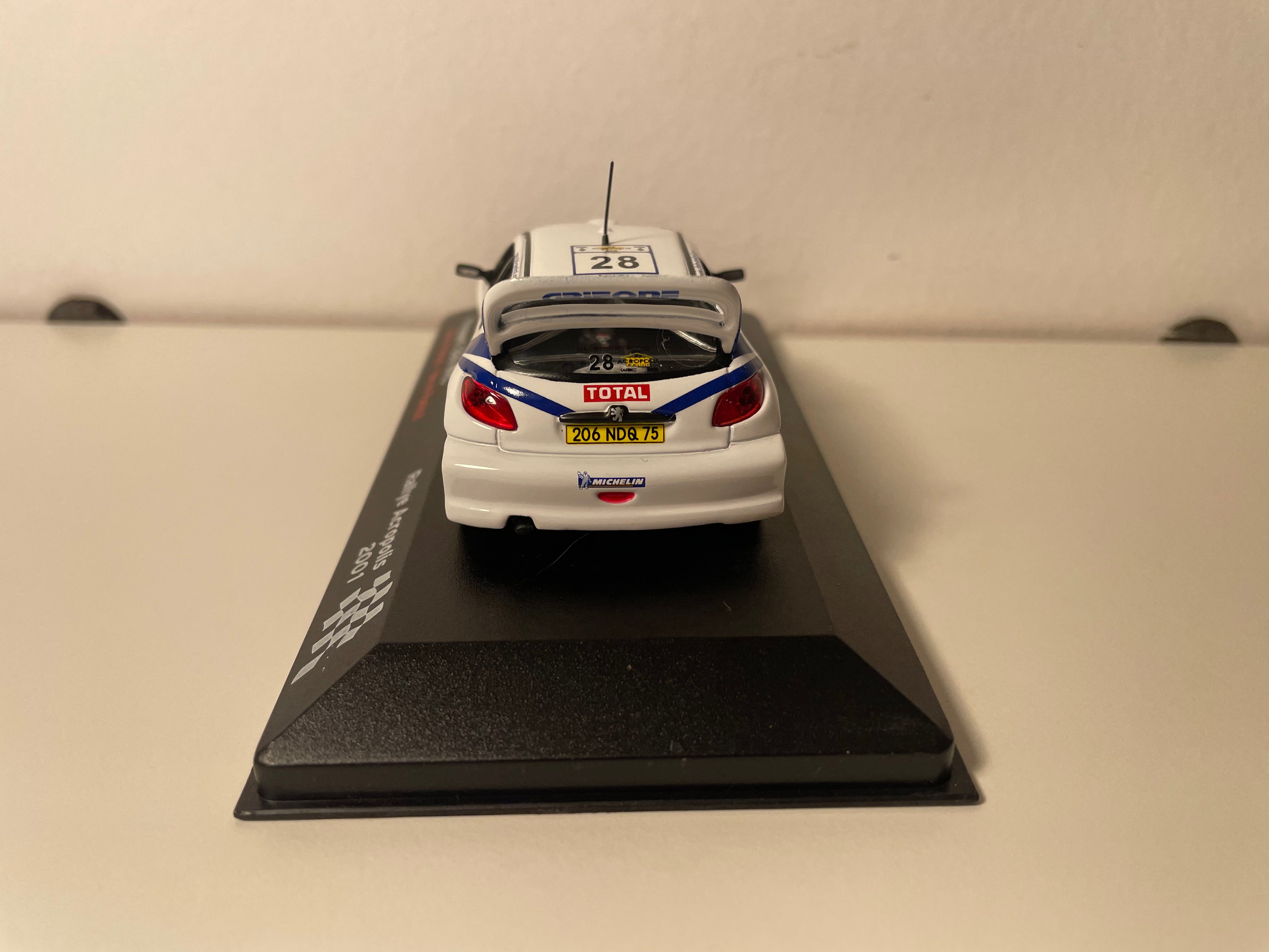 Voiture Miniature Peugeot 206 WRC blanche numéro 28 - Rallye Acropolis 2001