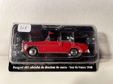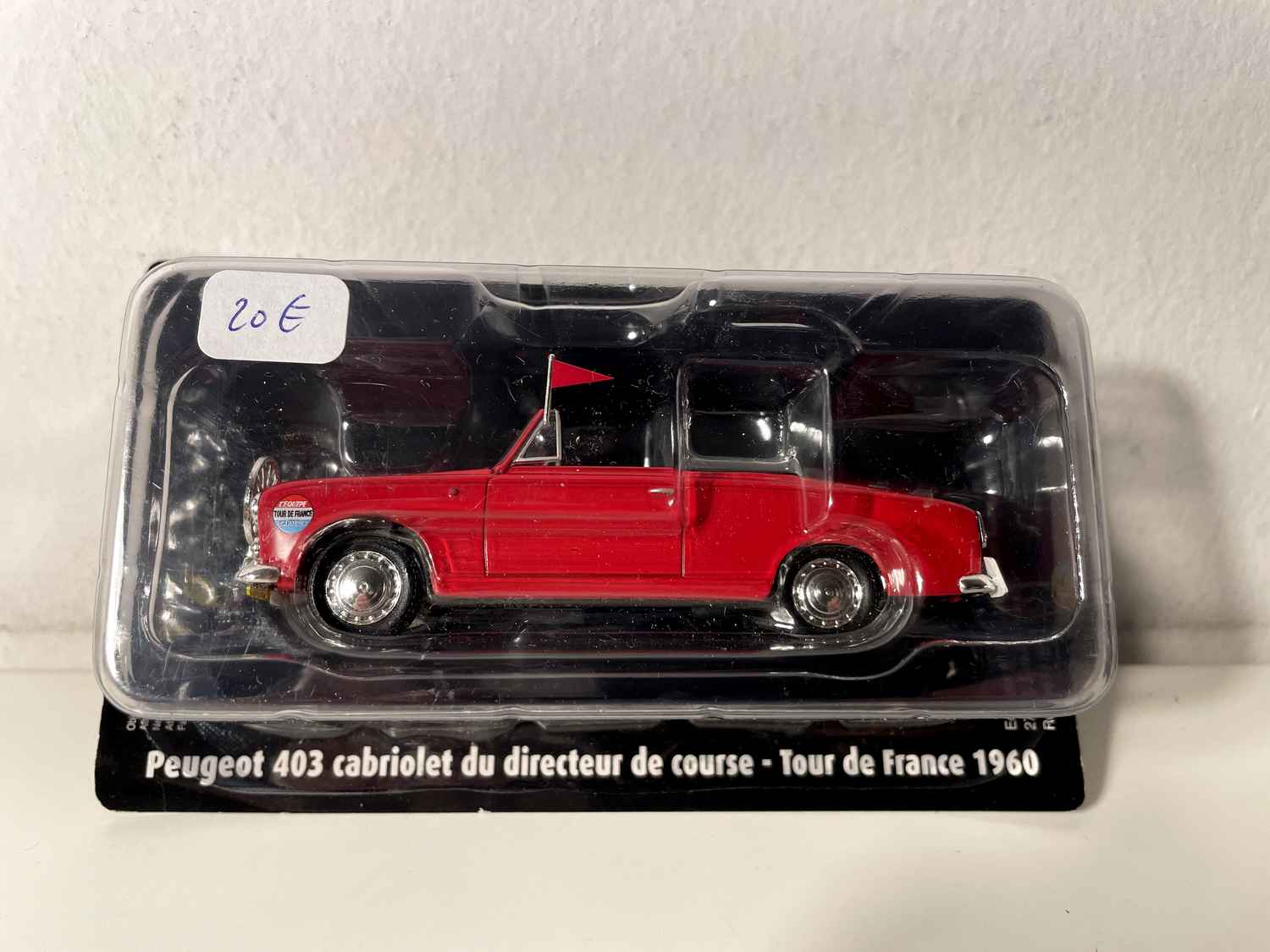 Voiture Miniature Peugeot 403 cabriolet rouge du directeur de course du tour de France de 1960