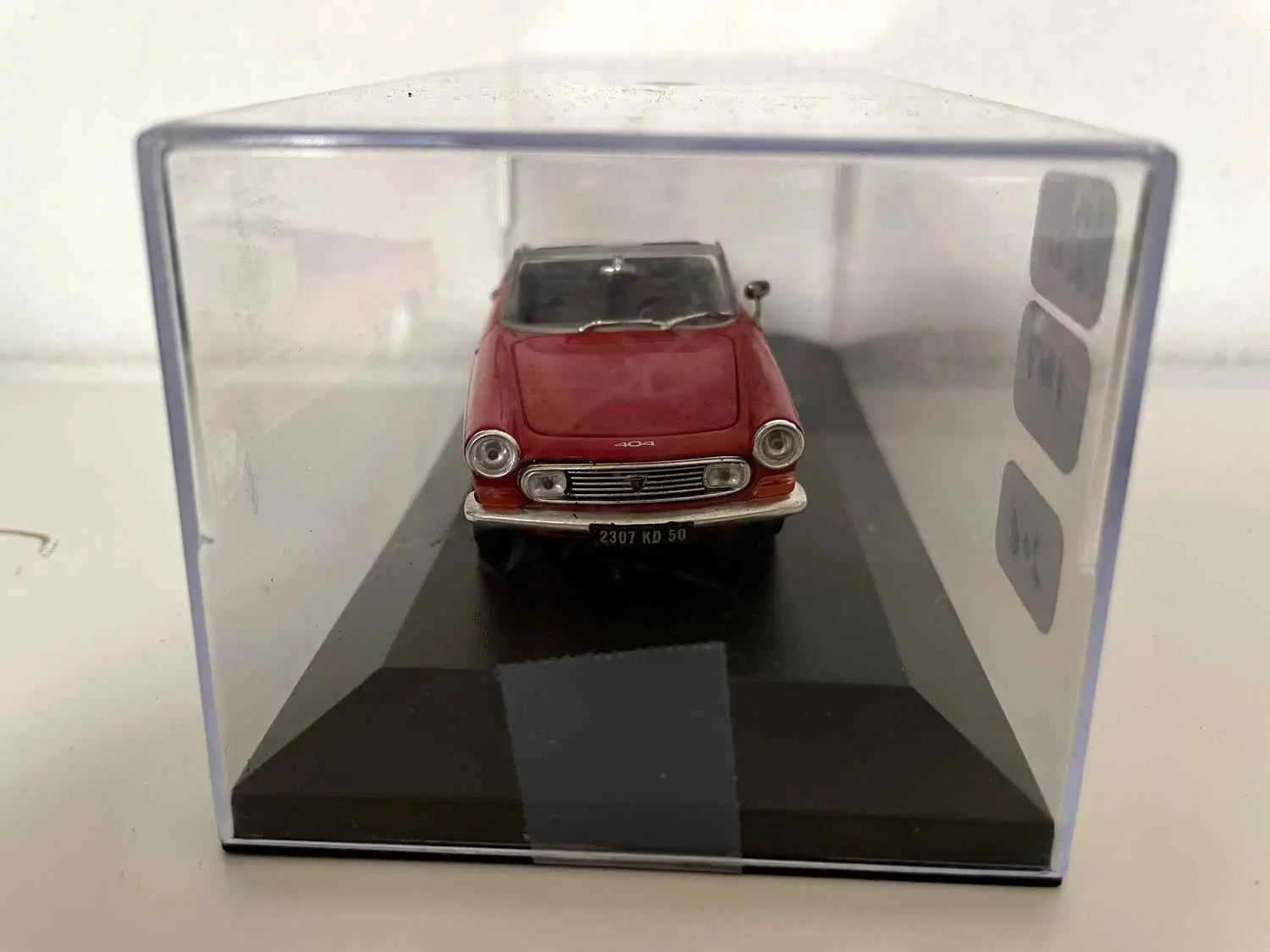 Voiture Miniature Peugeot 404 cabriolet rouge de 1967 (boite plexi)