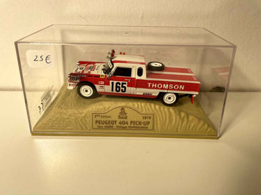 Cette Peugeot 404 pick-up miniature constitue un véritable objet de collection pour tous les passionnés d'automobile et d'aventure. Elle immortalise un moment historique de l'automobile française et de la compétition automobile mondiale.