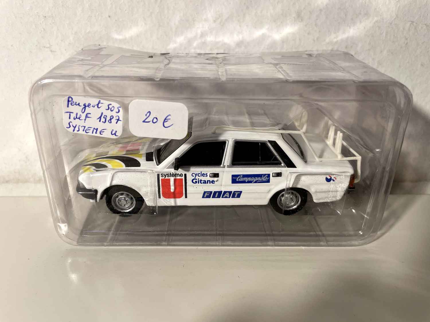 Voiture Miniature Peugeot 505 blanche Equipe cycliste "Système U" du Tour de France de 1987