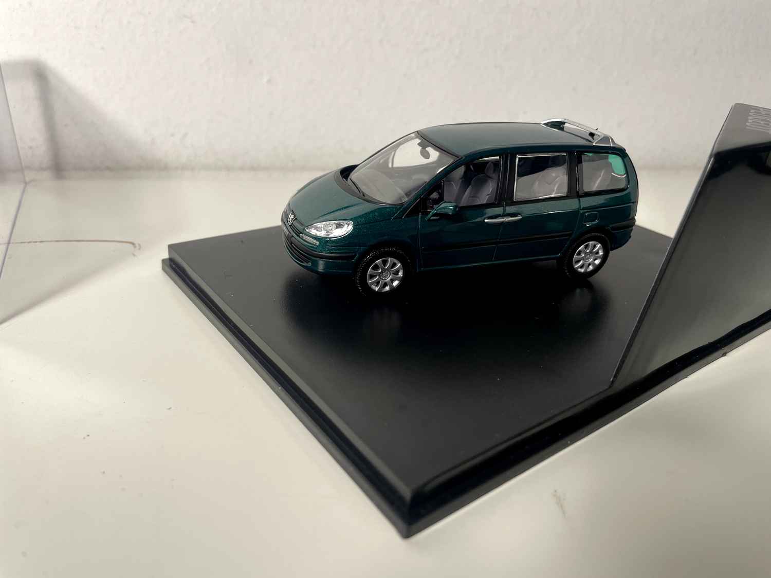 Cette miniature Peugeot 807 en teinte verte foncée représente fidèlement l'un des monospaces les plus emblématiques du début des années 2000. Réalisée par Norev avec un souci du détail remarquable, cette reproduction à l'échelle 1/43ème capture parfaitement l'essence de ce véhicule familial qui a marqué son époque.