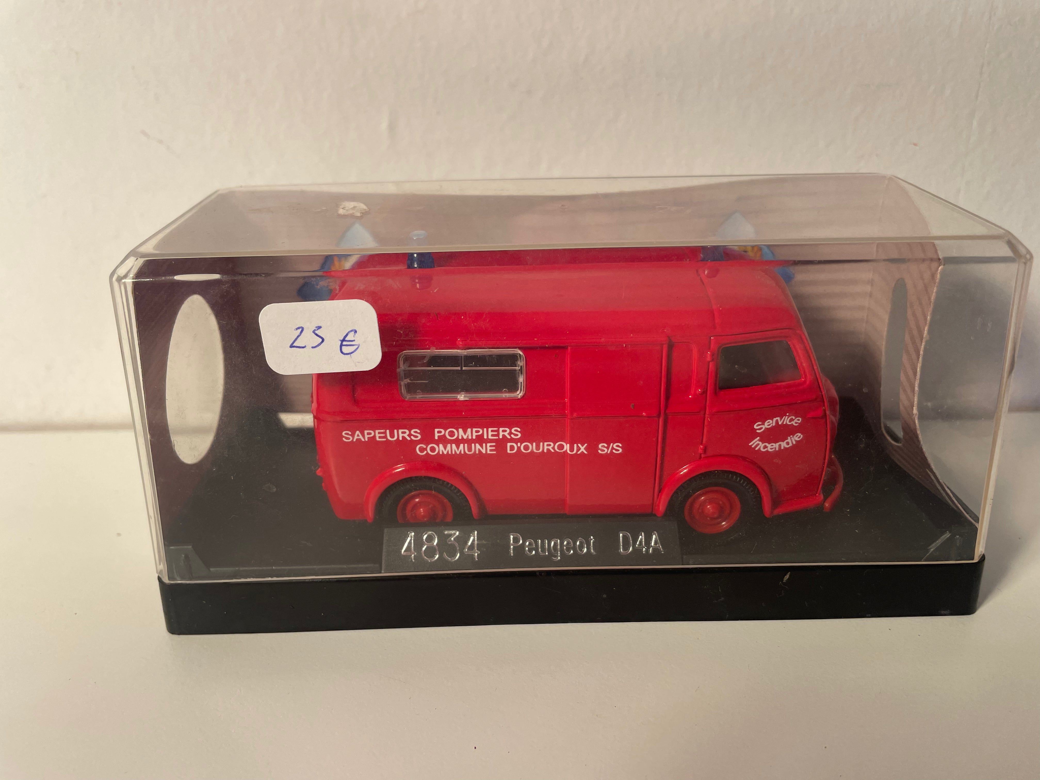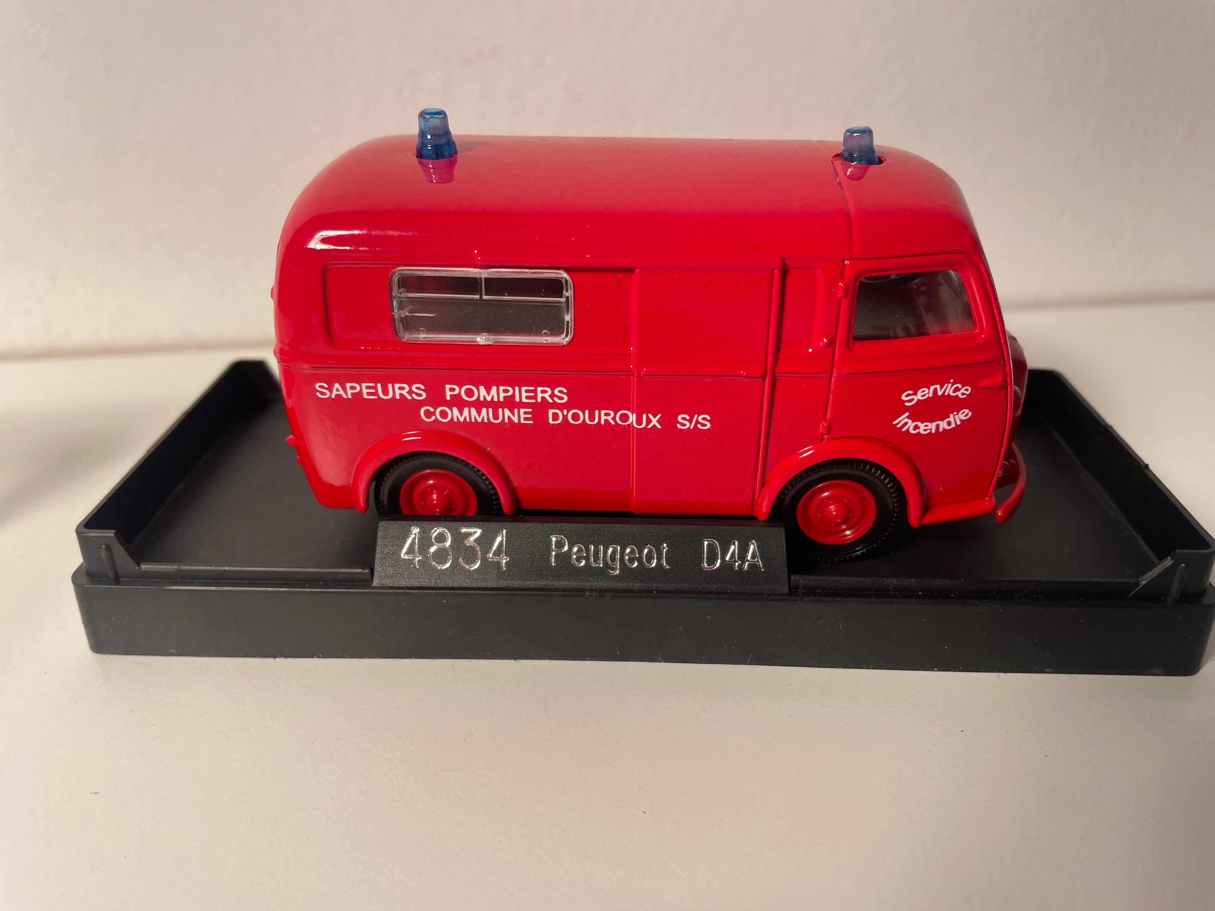 Voiture Miniature Peugeot D4A rouge POMPIERS (commune d'Ouroux s/s (71)) - Solido référence 4834