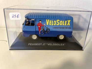 Voiture Miniature Peugeot J7 bleu avec publicité VELOSOLEX