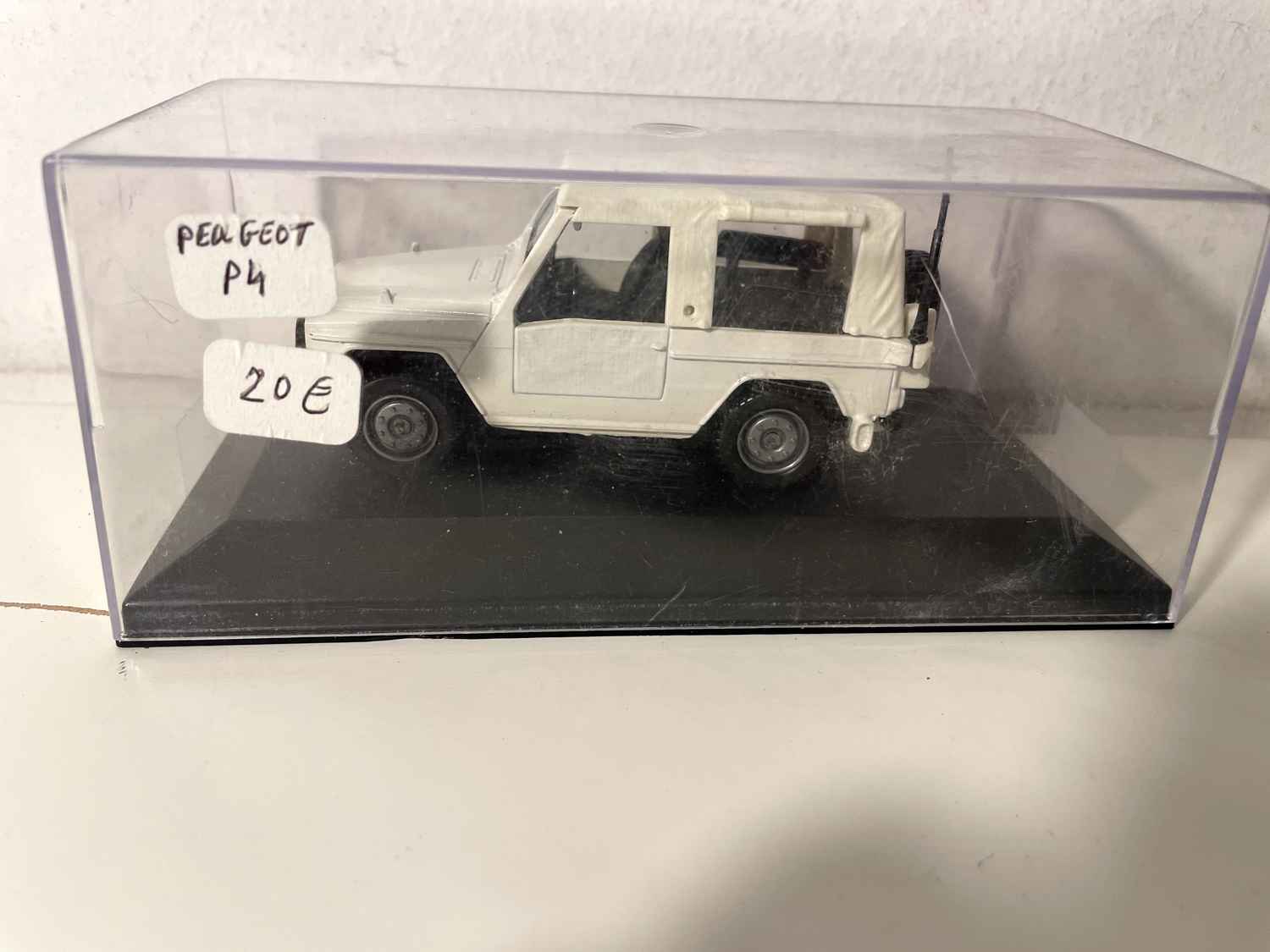 Voiture Miniature Peugeot P4 blanc (boite plexi)