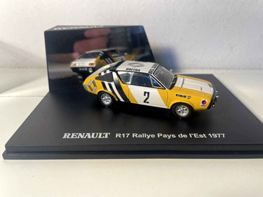 Voiture Miniature Renault 17 jaune et blanche numéro 2 rallye pays de l'Est de 1977 (coffret boite rectangle) - IXO