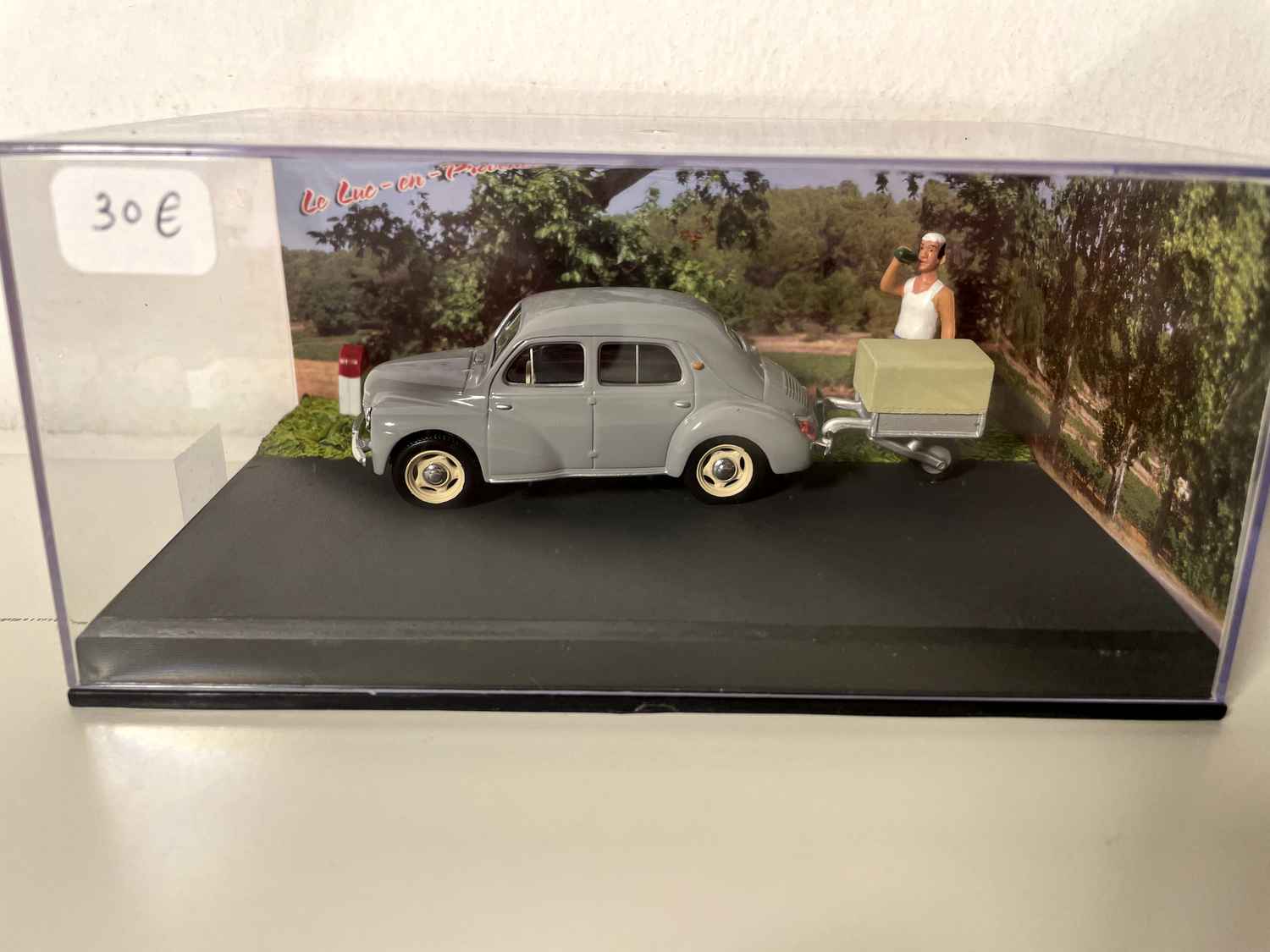 Voiture Miniature Renault 4 CV grise avec remorque - La Nationale 7 - La route bleue