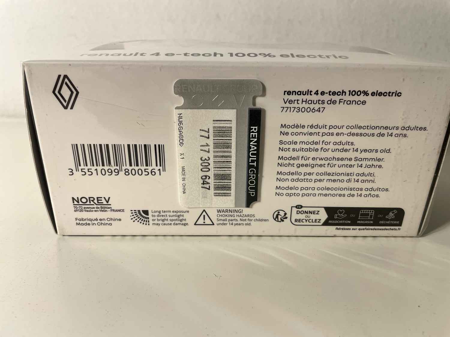 La Renault 4 E-Tech Electric s'inscrit dans une démarche révolutionnaire pour la marque au losange, alliant nostalgie et innovation technologique. Cette miniature Norev au 1/43ème capture parfaitement l'essence de ce modèle emblématique réinventé pour l'ère électrique, avec sa couleur vert Hauts de France qui évoque les paysages verdoyants du nord de la France.