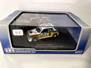 Voiture Miniature Renault 5 Turbo blanche et jaune numéro 14 - rallye du Portugal 1986 (coffret boite rectangle)