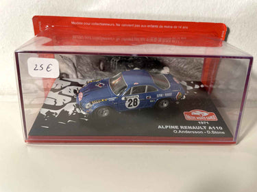 Voiture Miniature Renault Alpine A110 bleue numéro 28 - rallye de Monté-Carlo de 1971