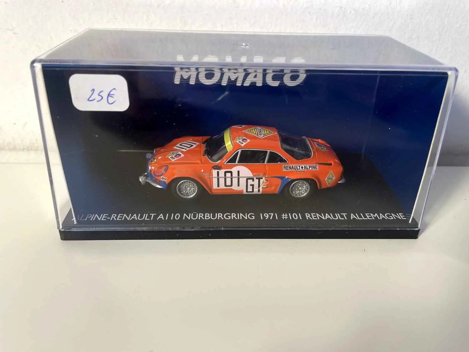 Voiture Miniature Renault Alpine A110 orange numéro 101 Nürburgring Allemagne (collection Monaco)