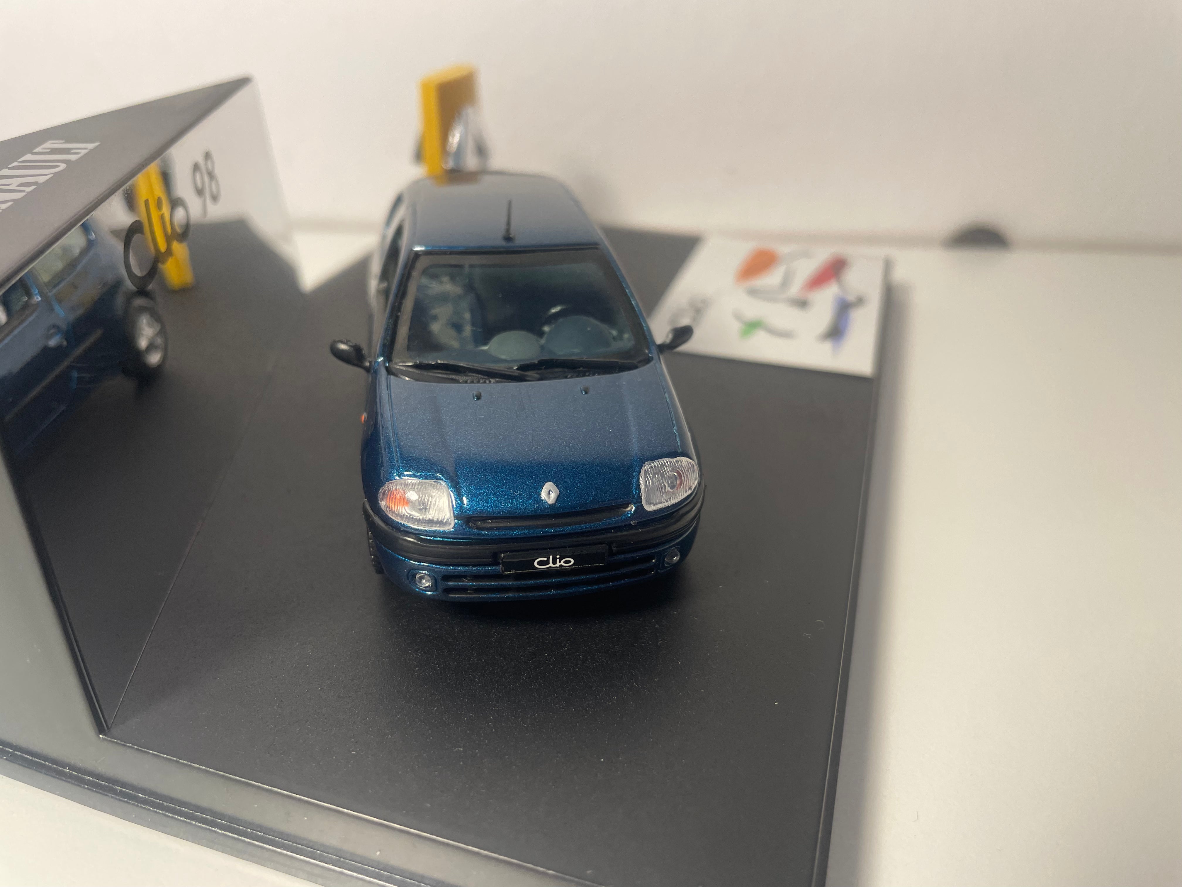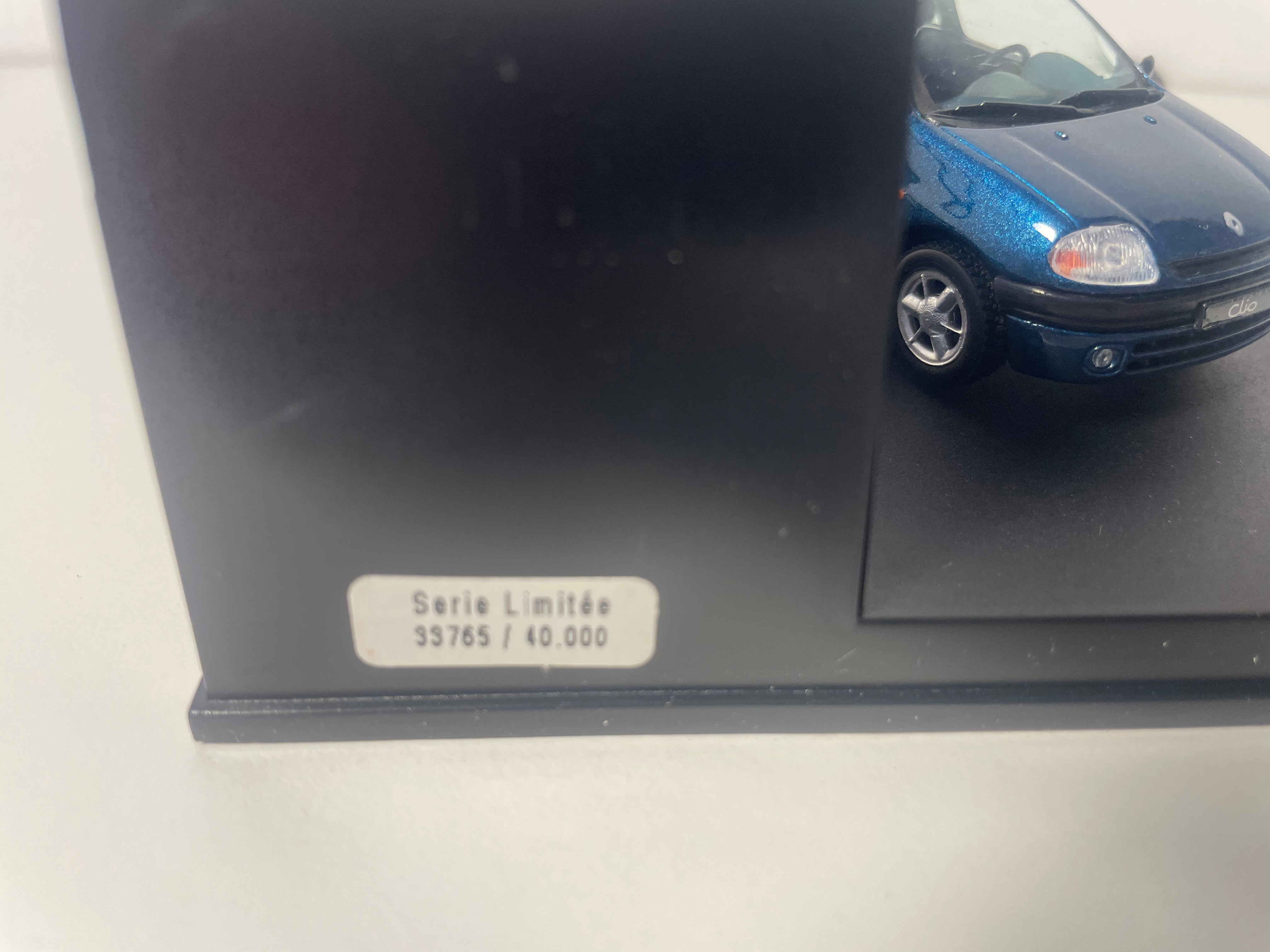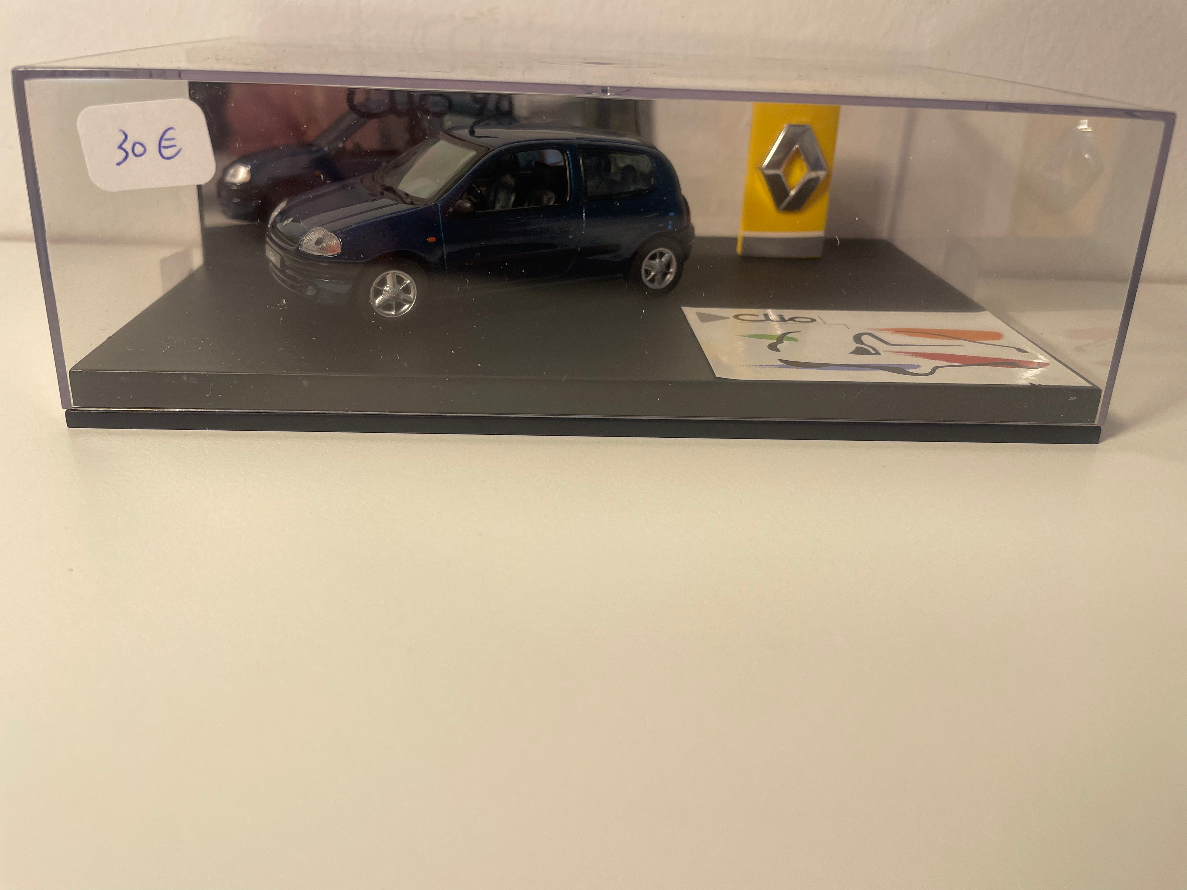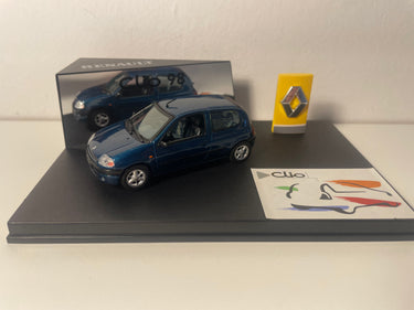 Voiture Miniature Renault Clio bleue - VITESSE (coffret boite rectangle avec boite en carton blanc)