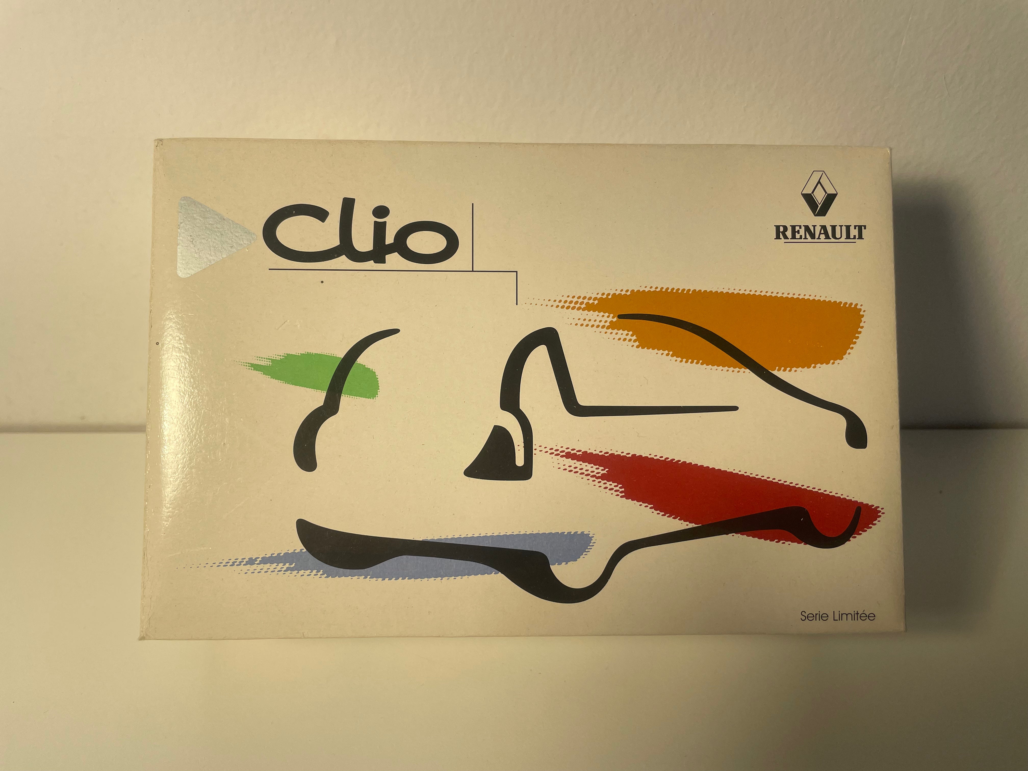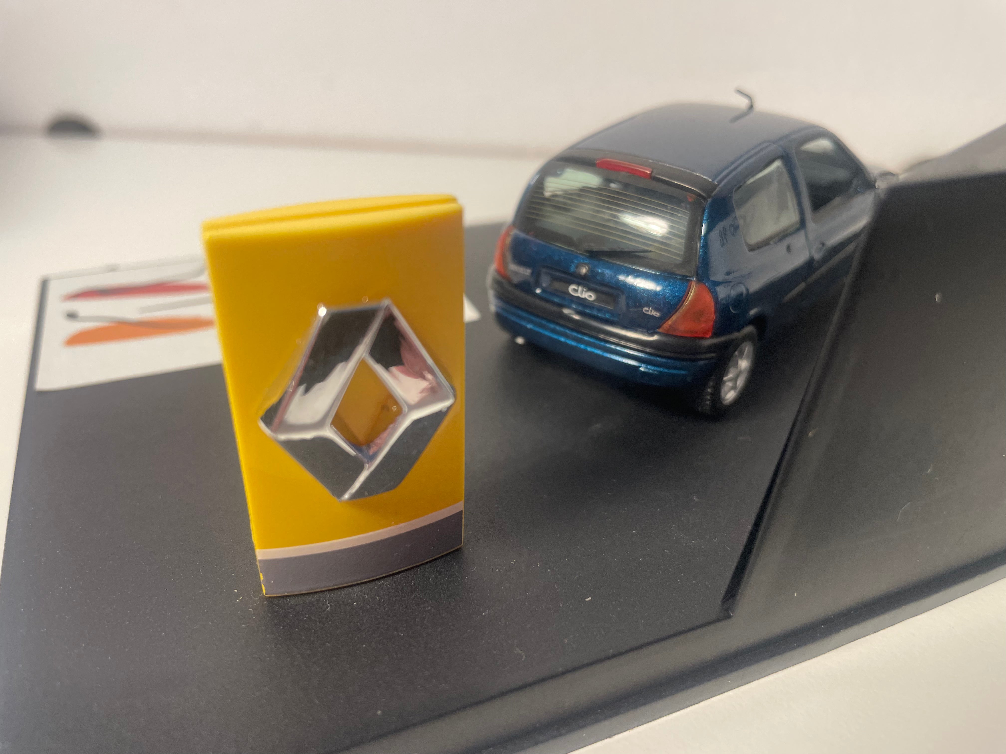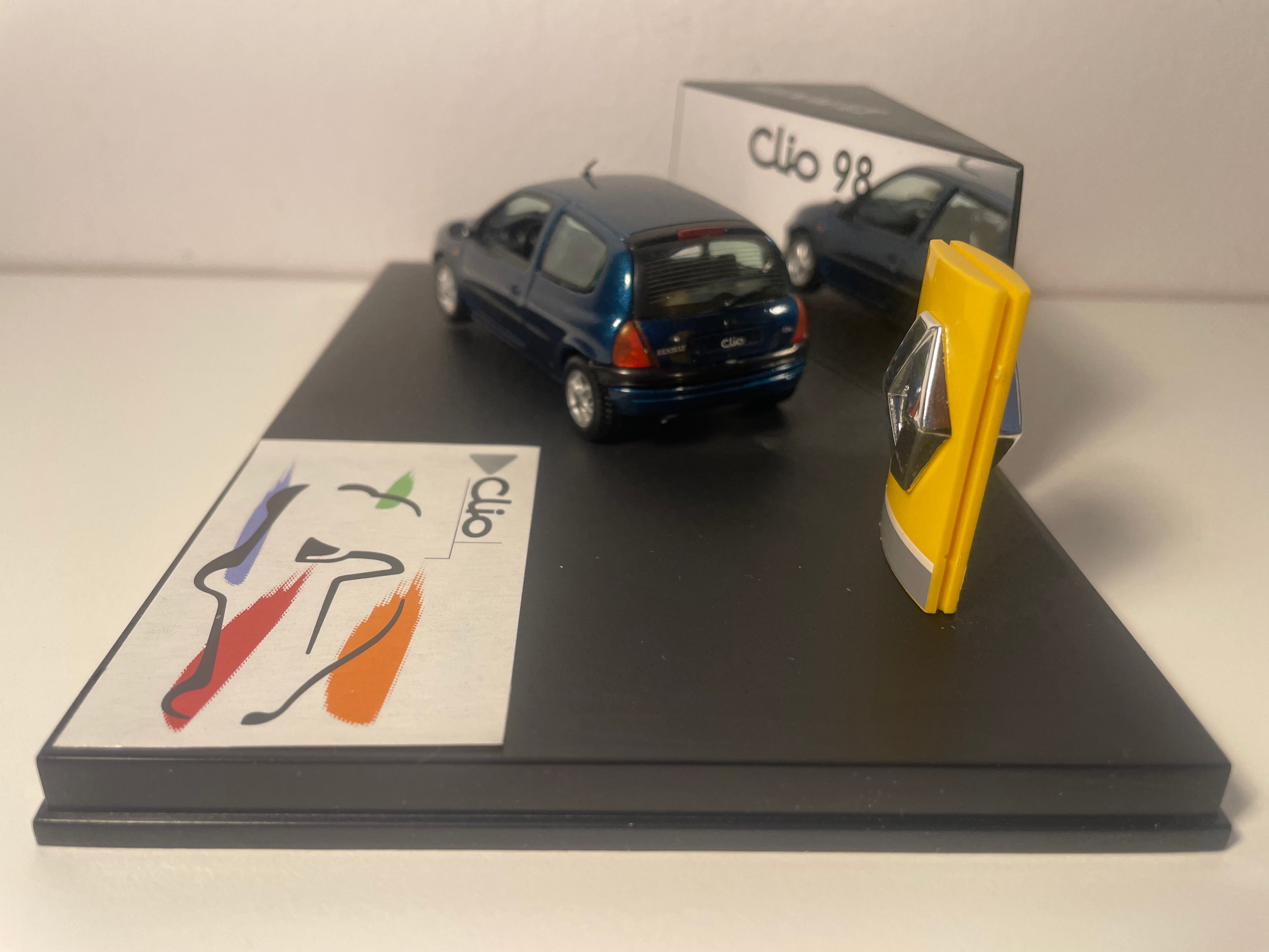 Voiture Miniature Renault Clio bleue - VITESSE (coffret boite rectangle avec boite en carton blanc)