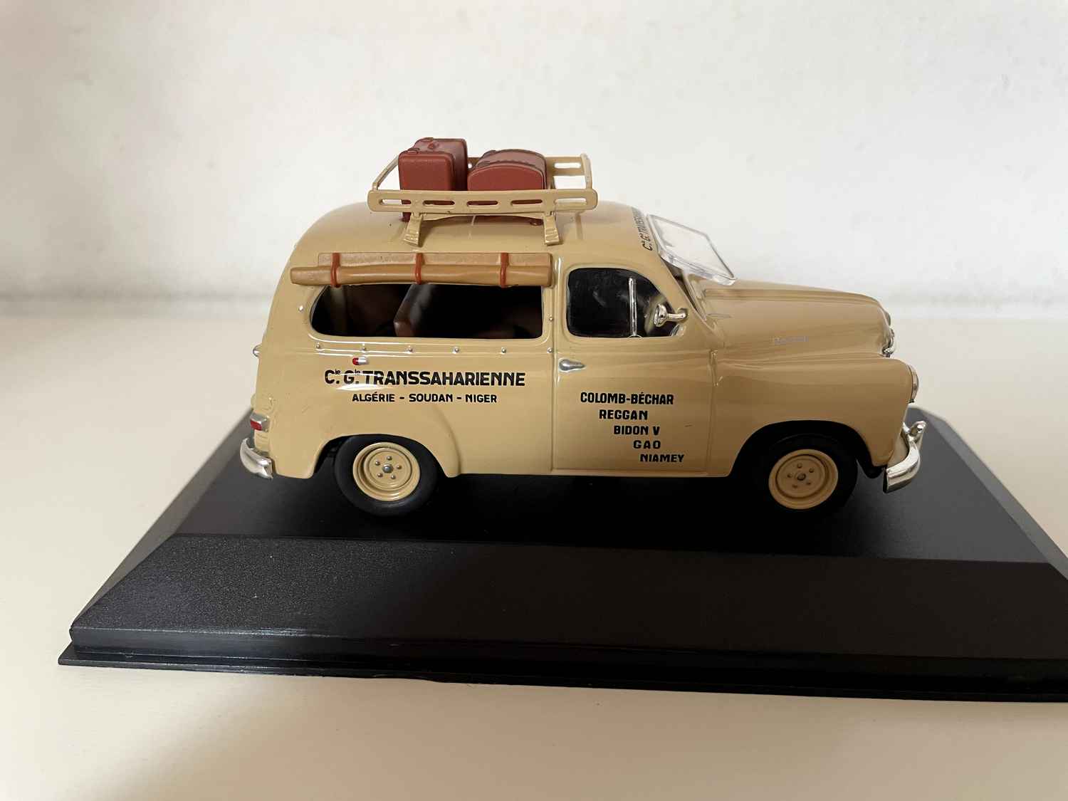 Véritable témoin d'une époque révolue, cette miniature s'impose comme un objet de collection incontournable pour les passionnés d'automobile française et d'histoire coloniale. Sa livrée caractéristique de taxi saharien en fait une pièce unique qui évoque les grands espaces du désert et l'aventure automobile des années d'après-guerre.
