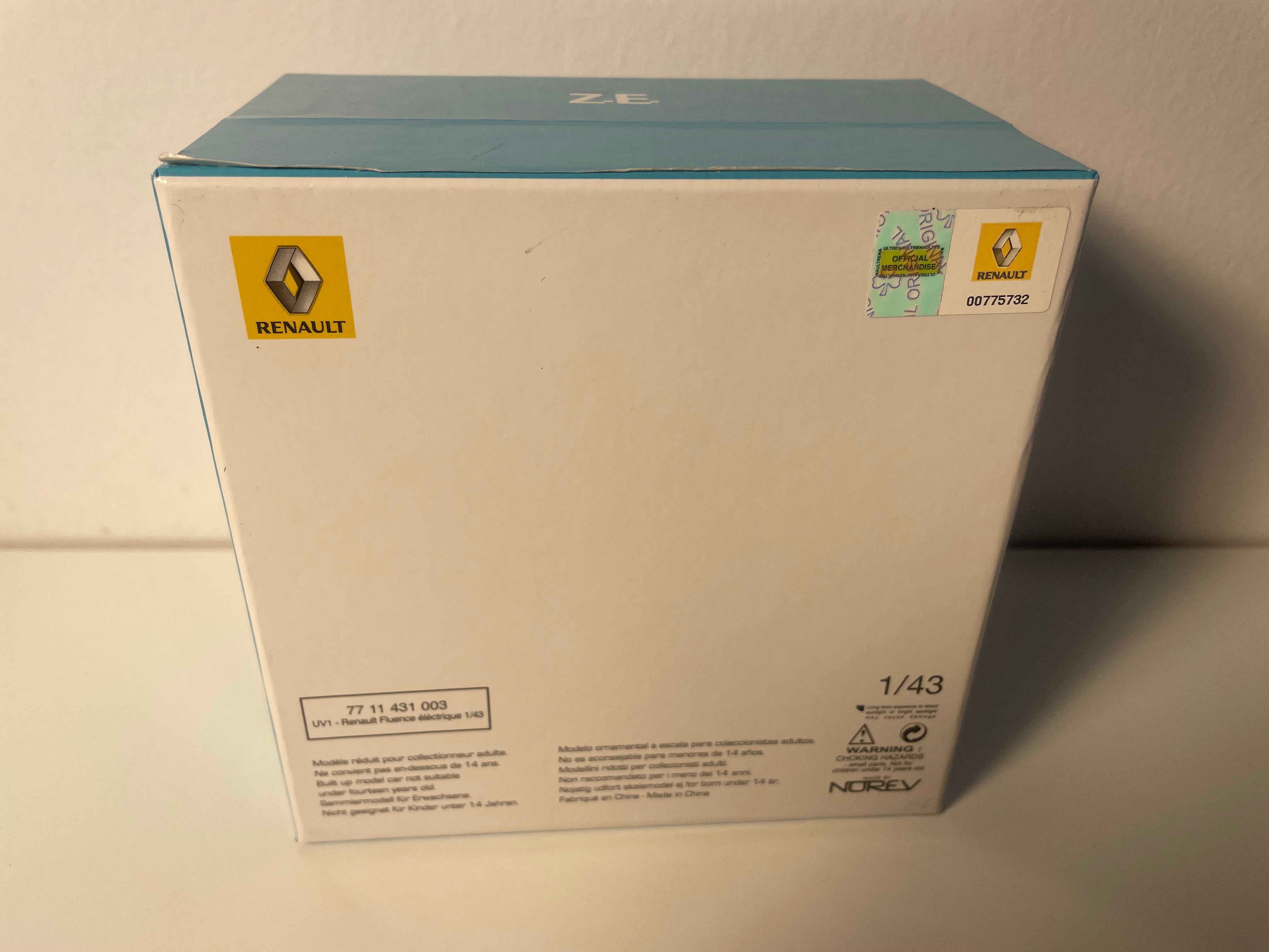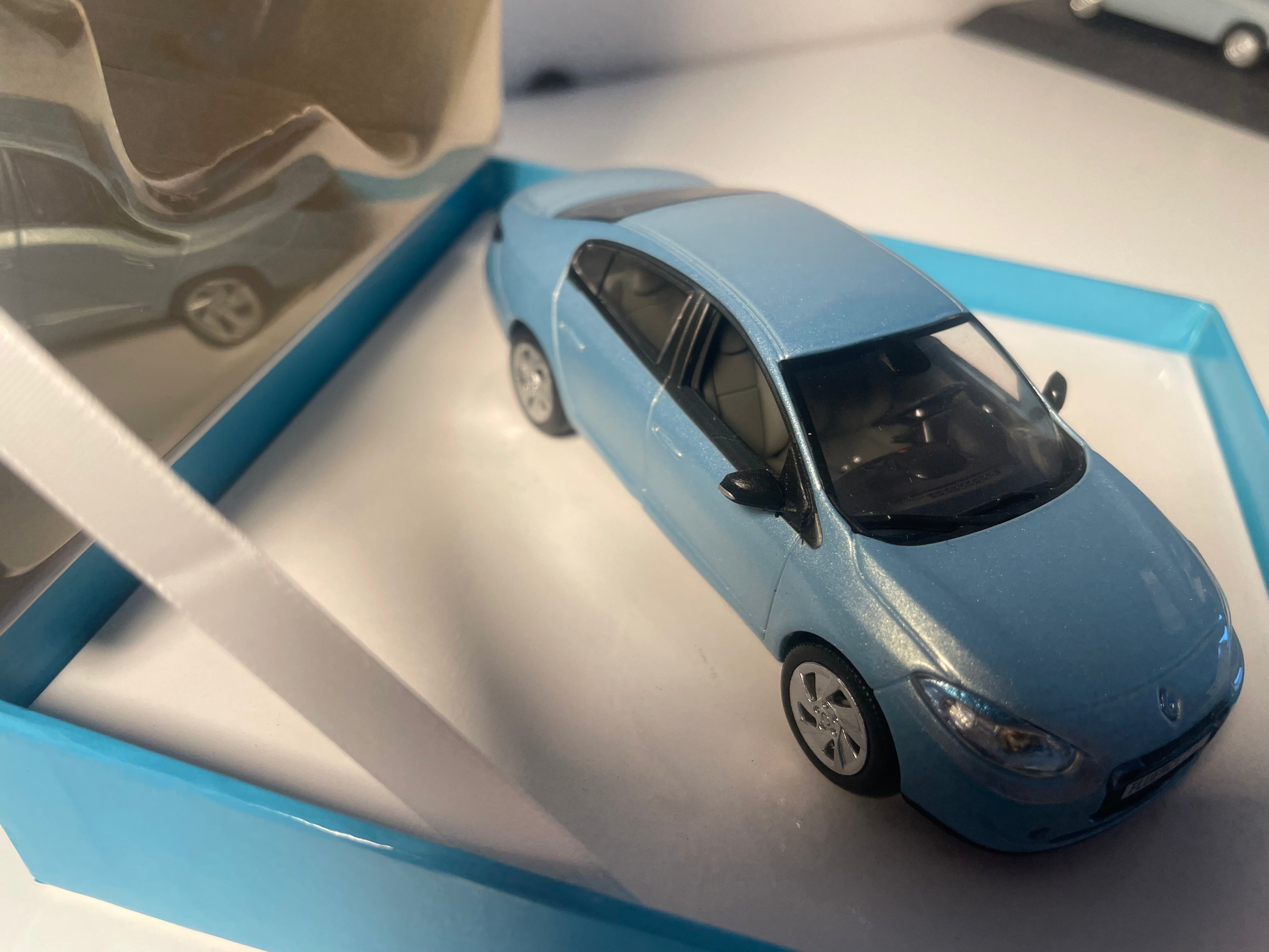 Voiture Miniature Renault Fluence Z.E. bleue - NOREV (coffret boite carrée bleue)