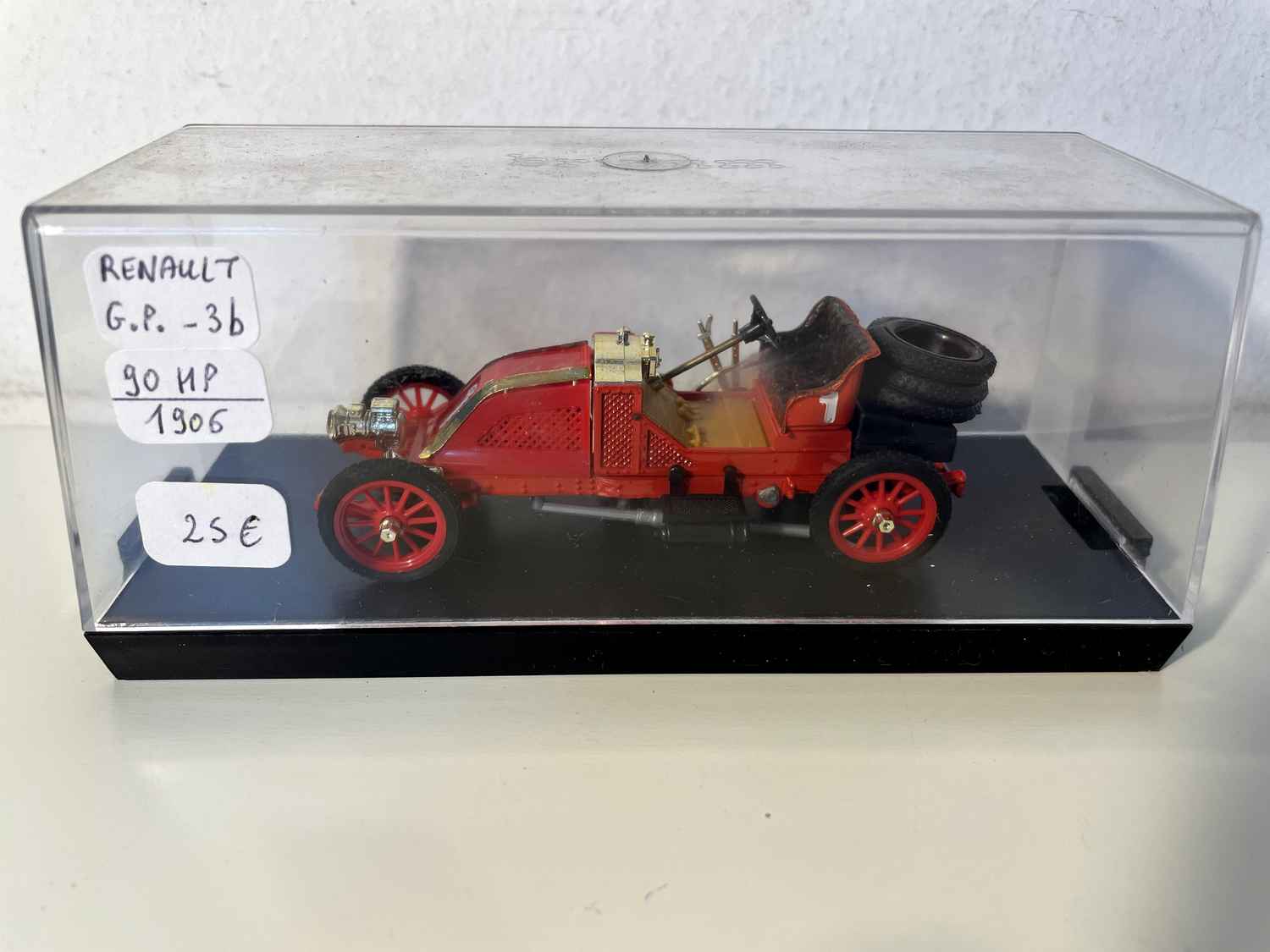 Cette Renault GP 3b 90 HP de 1906 occupe une place de choix dans l'univers des miniatures de collection, représentant une époque fondatrice de l'automobile sportive française. Elle s'intègre parfaitement aux collections dédiées aux voitures miniatures Renault ou aux miniatures de voitures de course historiques.