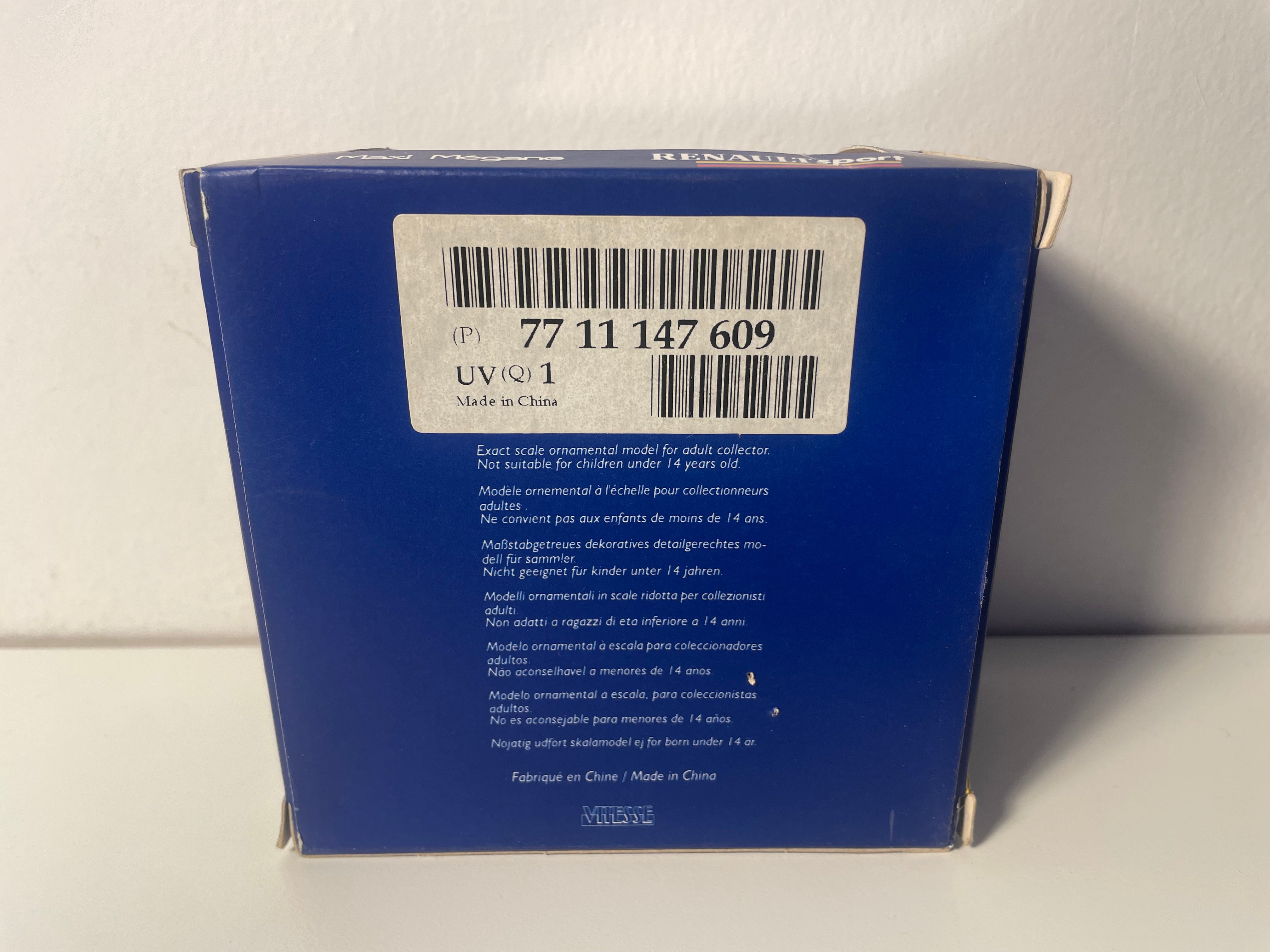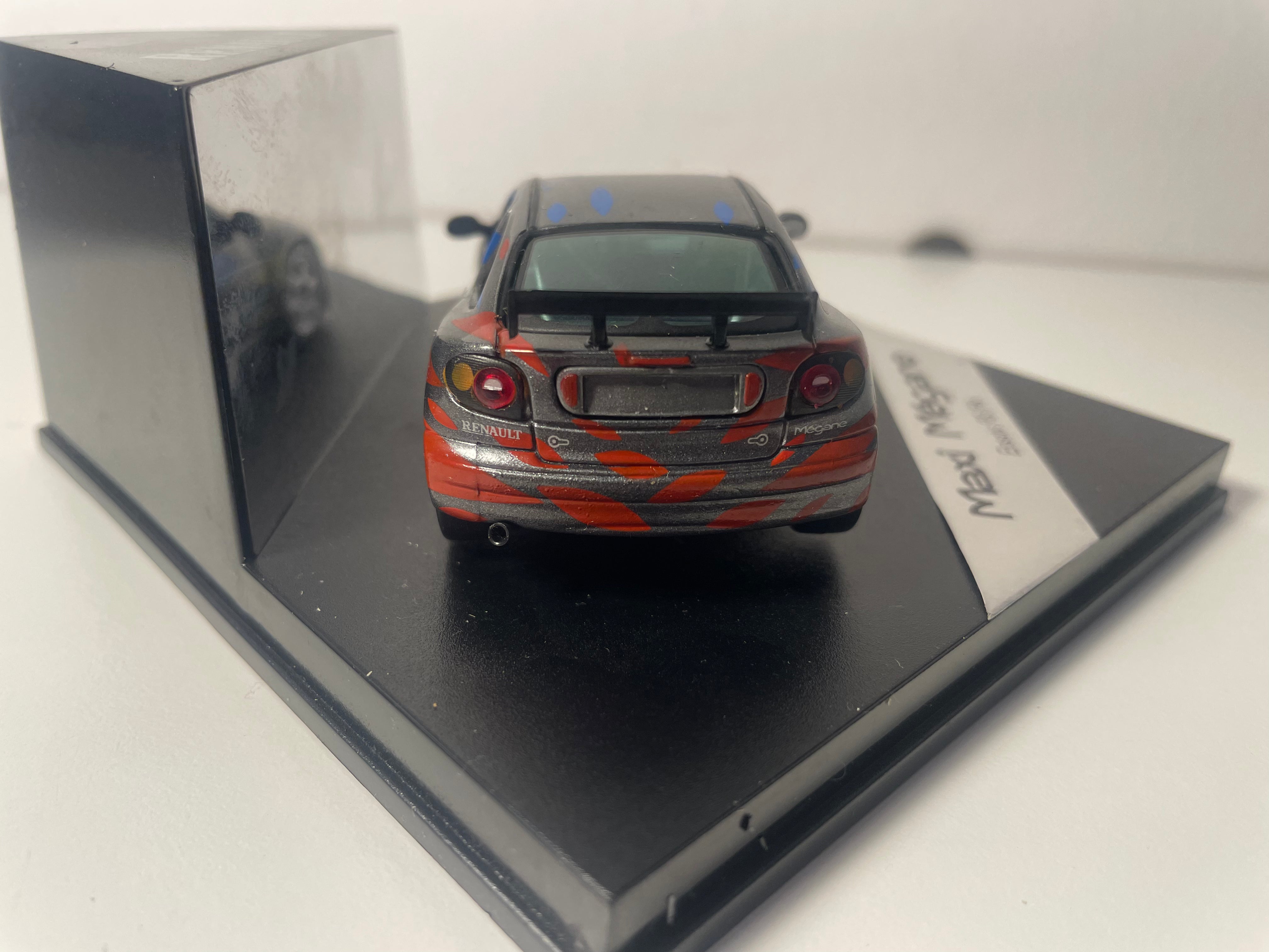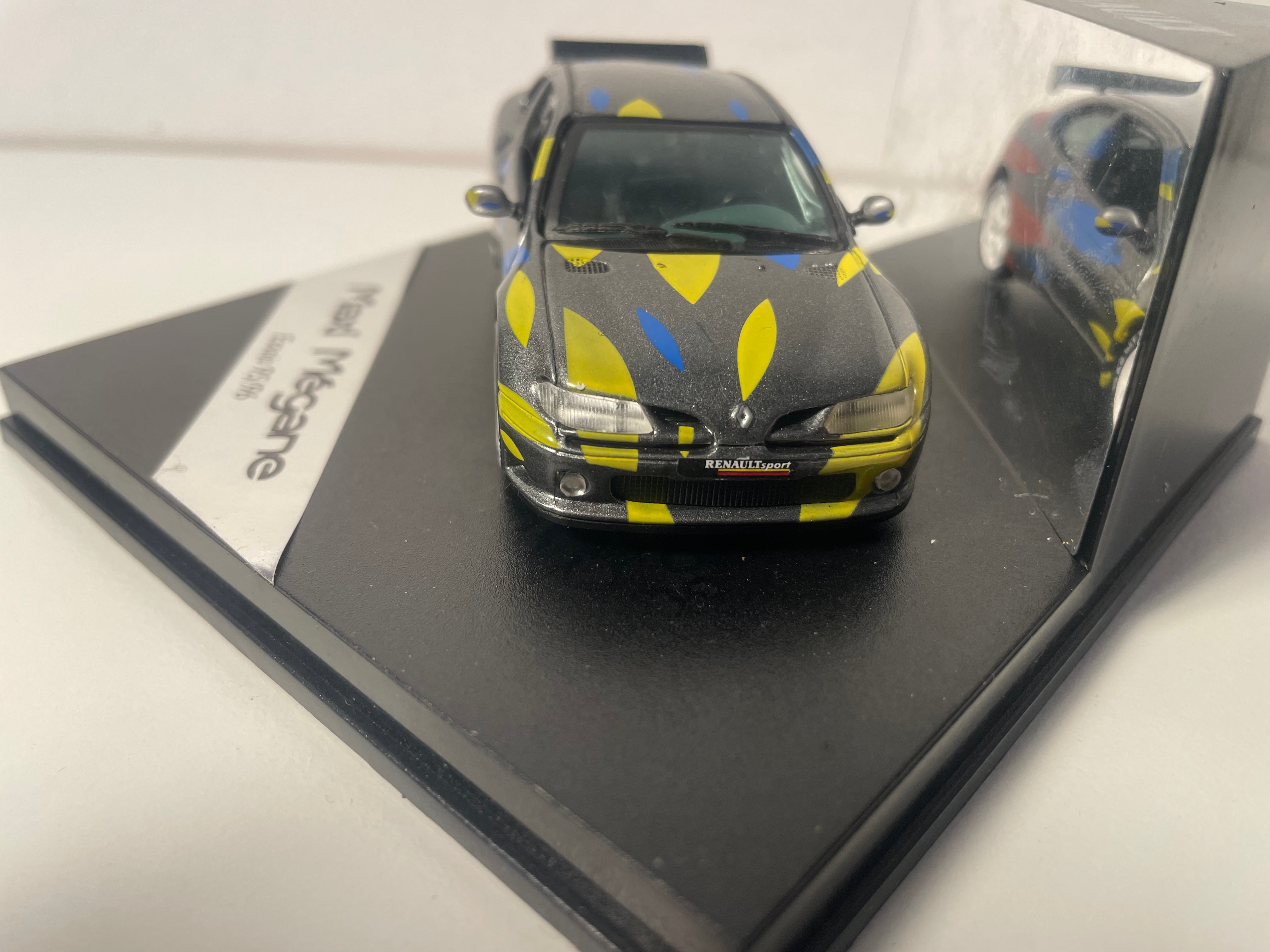 Découvrez cette exceptionnelle Renault Maxi Mégane grise avec dessins jaunes et bleus, une pièce rare représentant les essais de 1995-1996. Cette miniature Vitesse capture l'esprit de développement et d'innovation qui caractérisait les prototypes de course Renault de cette époque charnière du sport automobile français.