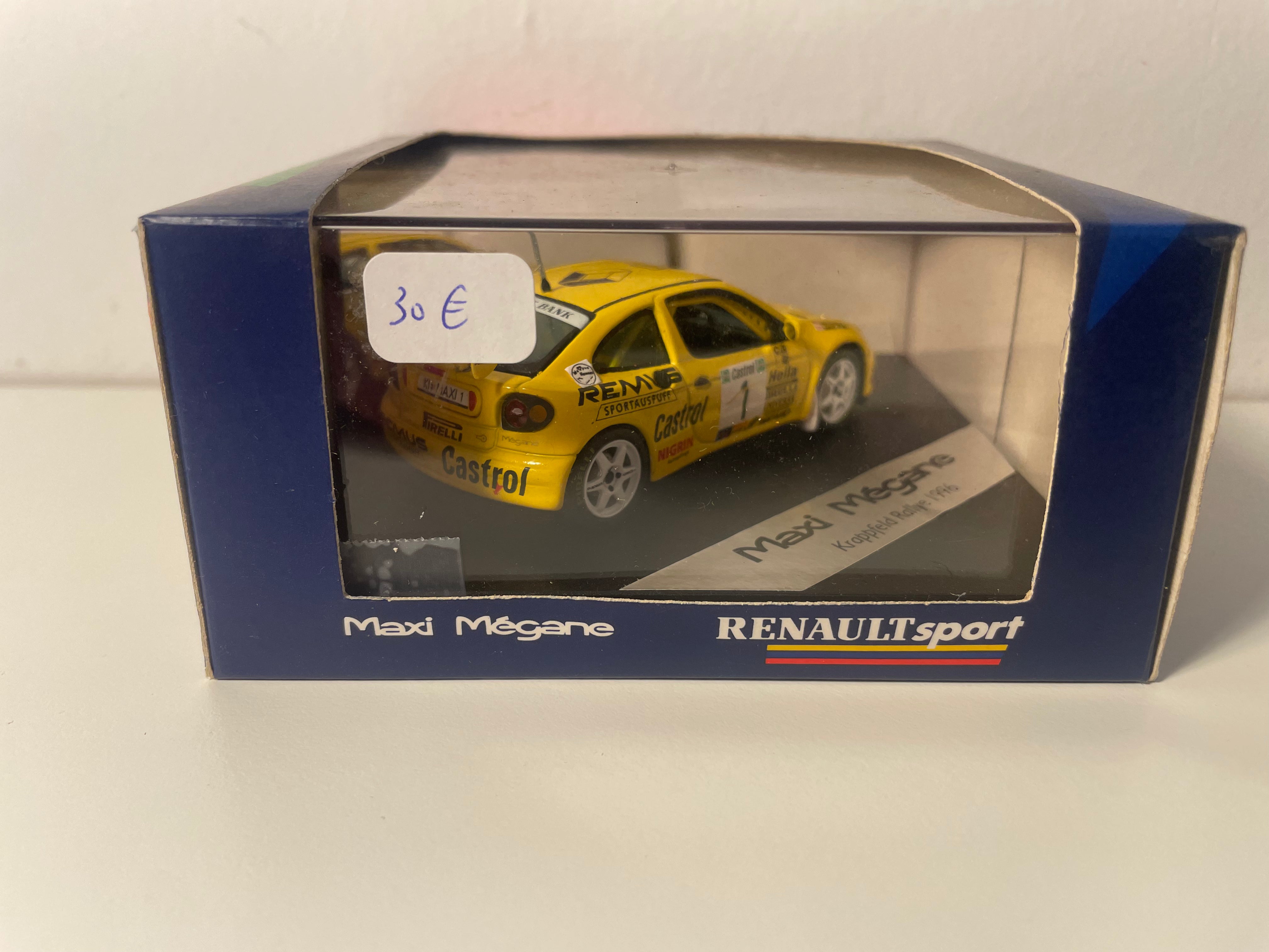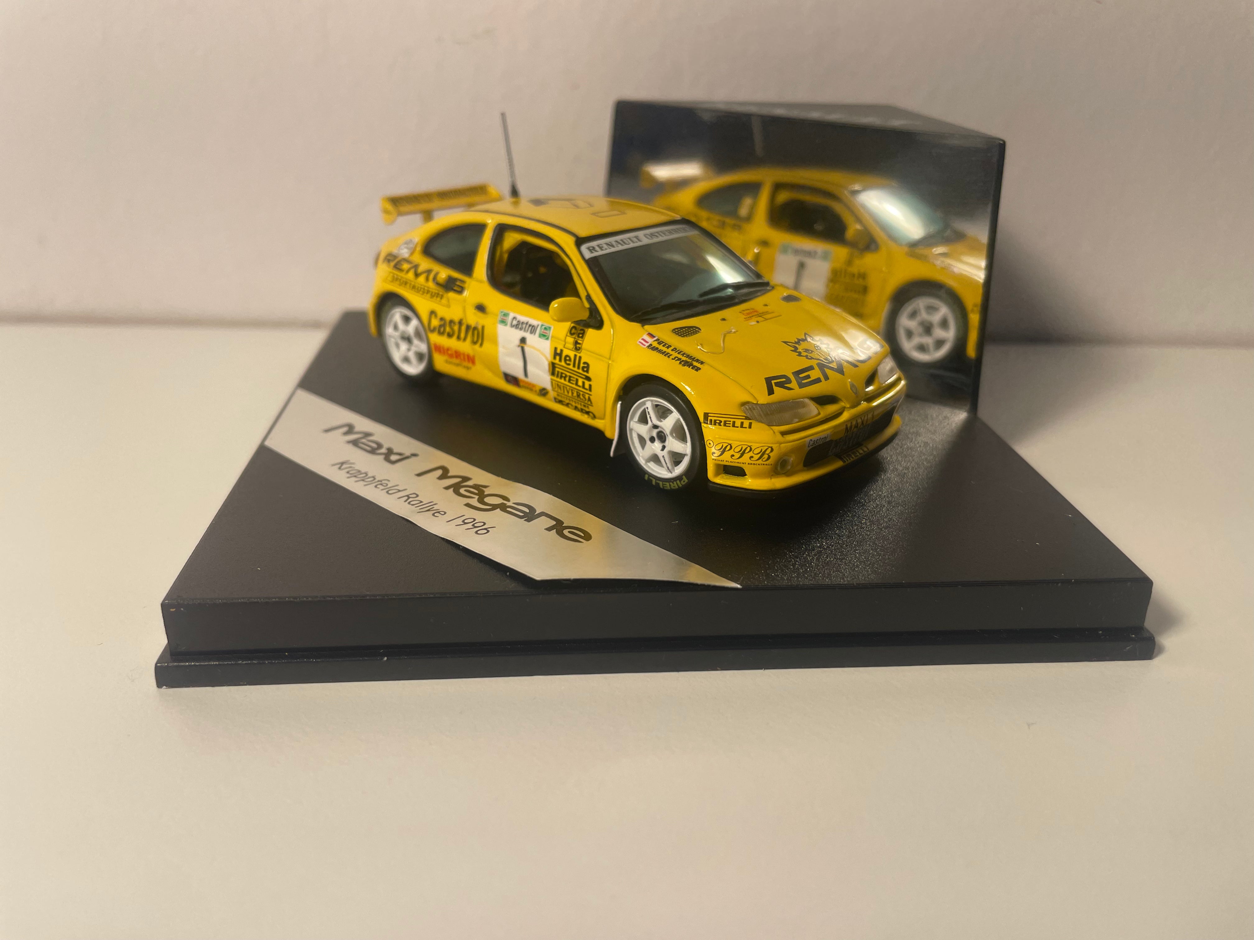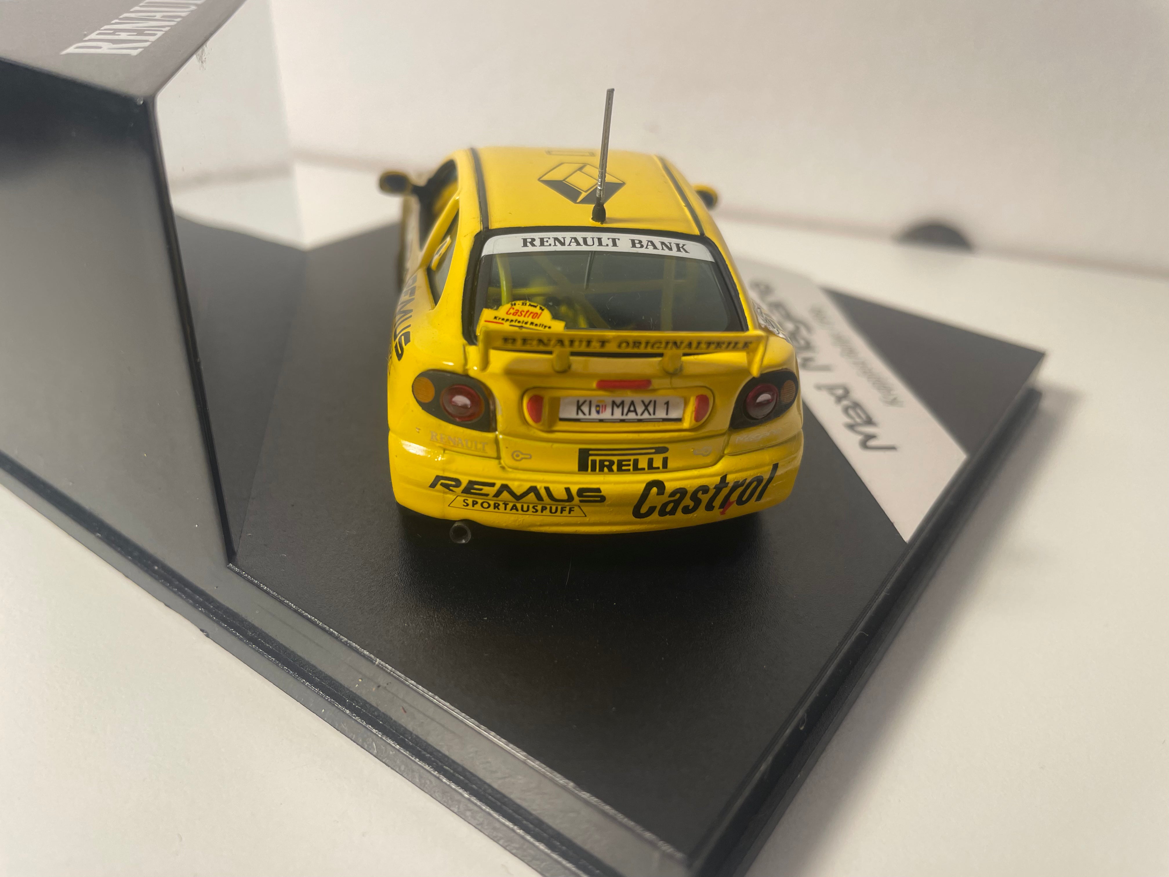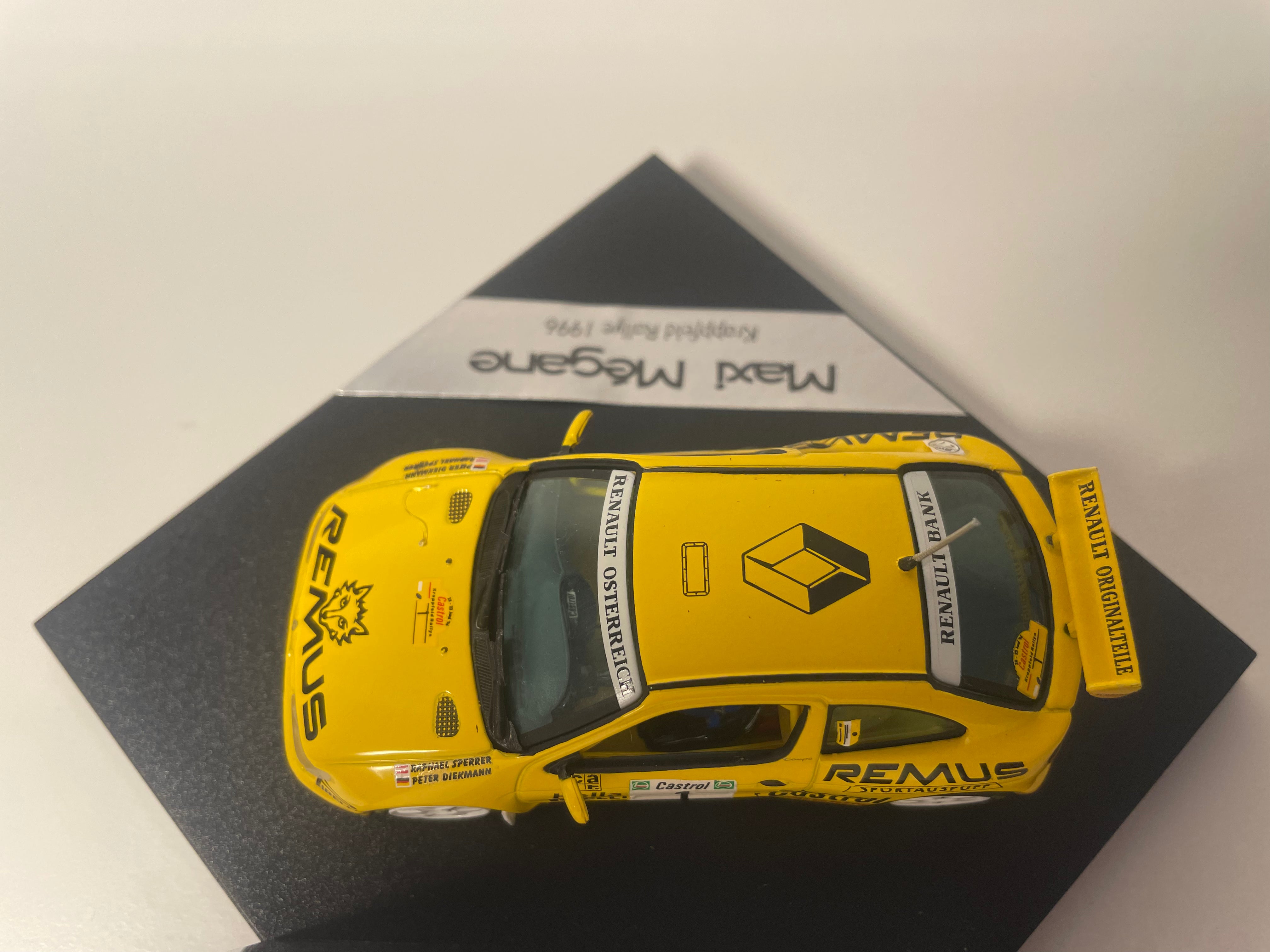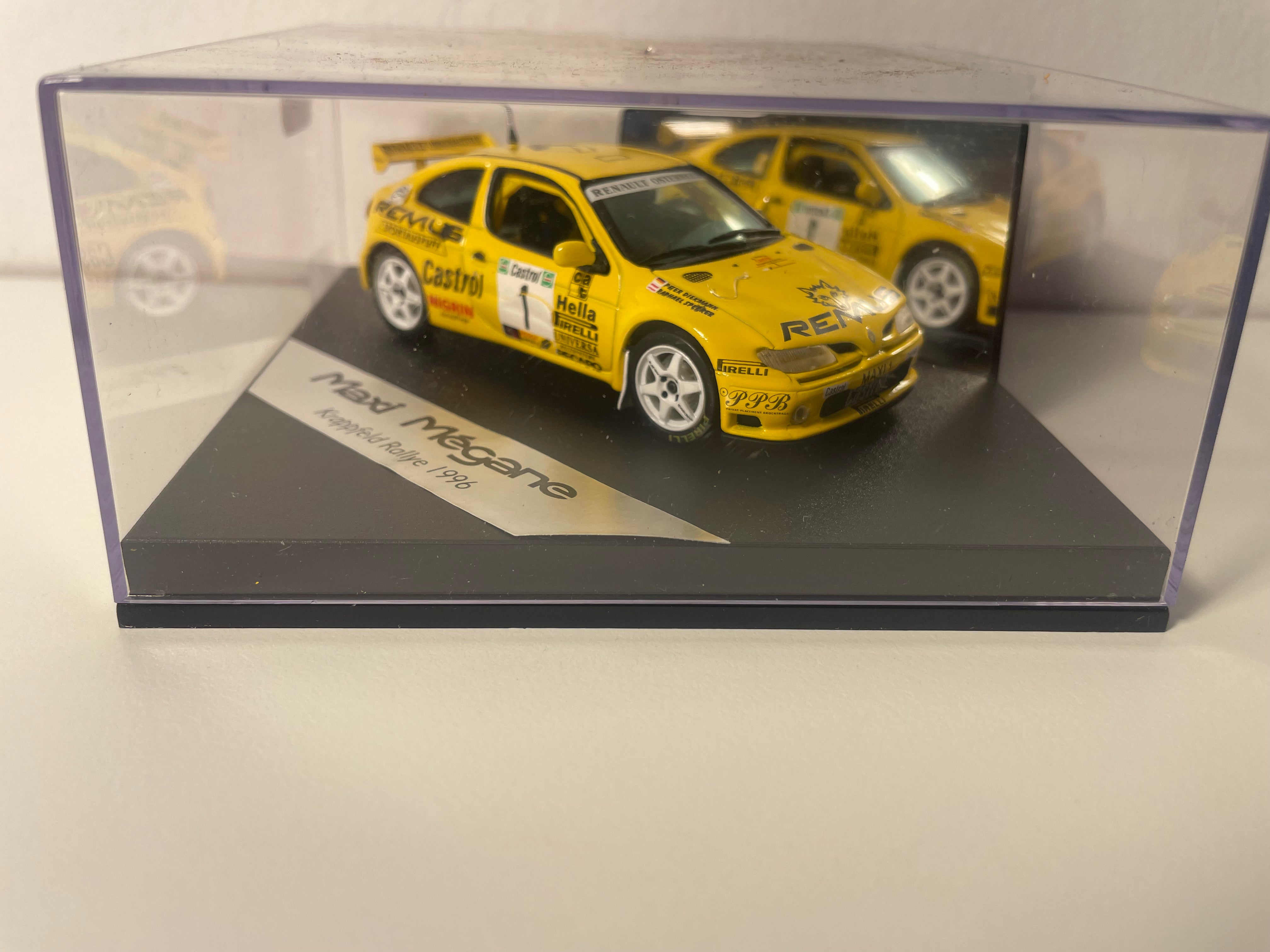Voiture Miniature Renault Maxi Mégane jaune numéro 1 - rallye de Krappfeld de 1996 - Vitesse (boite carrée)