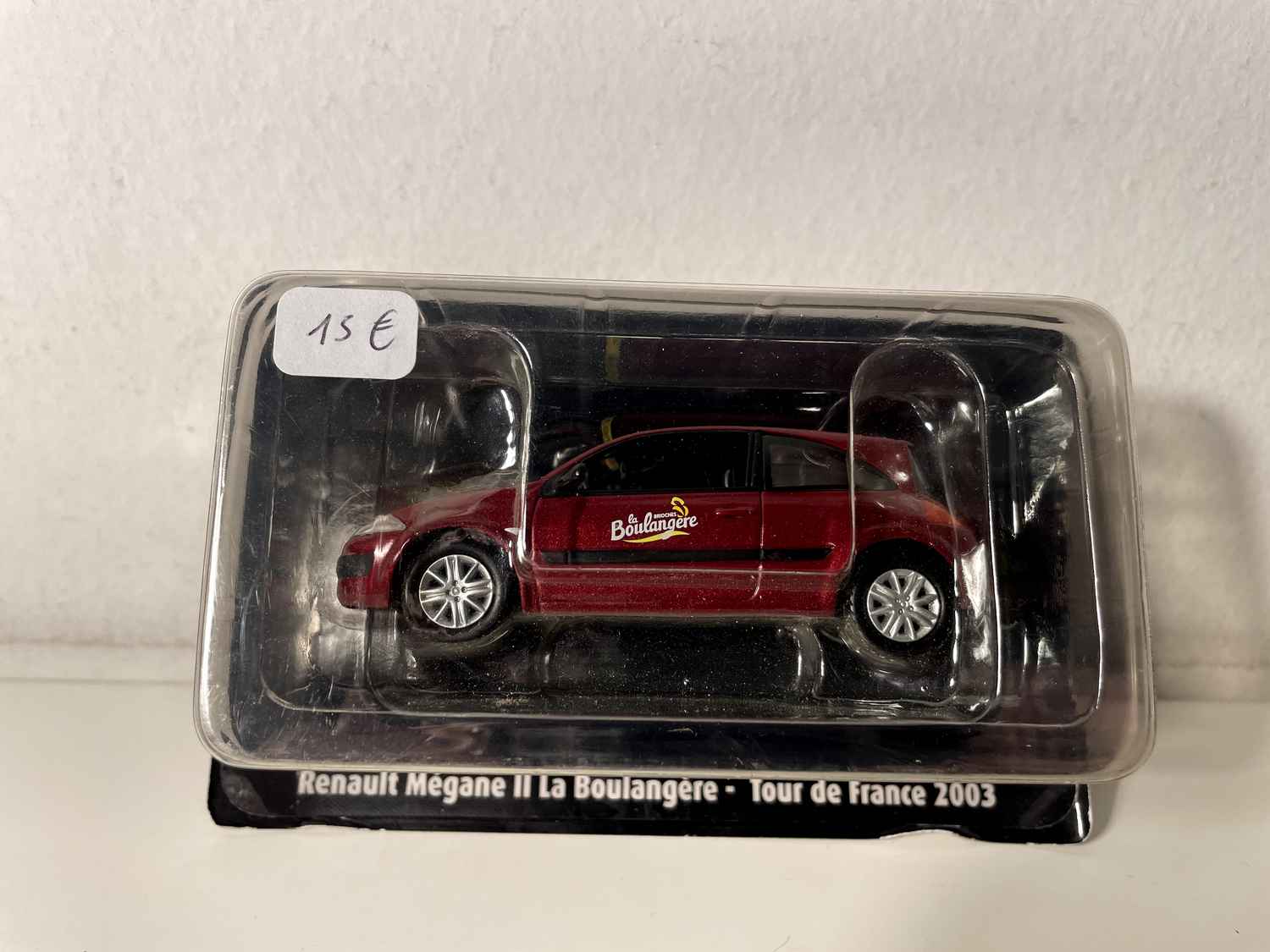 Cette miniature Renault Mégane 2 dans sa livrée bordeaux de La Boulangère du Tour de France 2003 capture un moment emblématique de la Grande Boucle. Reproduction fidèle de l'un des véhicules officiels ayant accompagné la caravane publicitaire du Tour, cette pièce incarne parfaitement l'esprit festif et commercial qui caractérise l'événement cycliste le plus suivi au monde.
