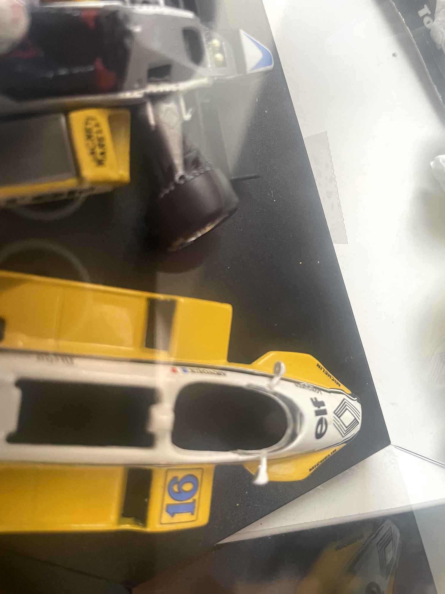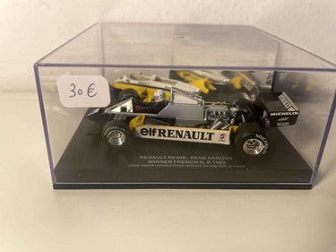 Voiture Miniature Renault RE30B Formule 1 jaune et blanche numéro 16 - vainqueur du GP de France 1982 (René Arnoux)