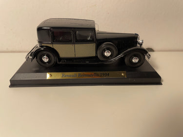 Voiture Miniature Renault Réinastella noire et avec damiers noirs et verts sur les portes de 1934 (collection Voitures d'exception)