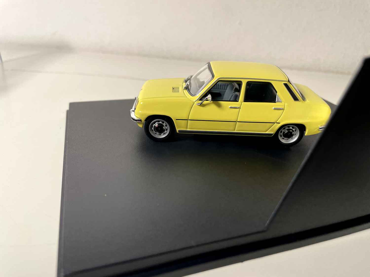 Découvrez cette magnifique Renault 7 miniature IXO dans sa splendide livrée jaune d'époque, reproduction fidèle du modèle de 1974. Cette miniature capture parfaitement l'essence de la berline populaire française qui marqua les années 70, offrant aux collectionneurs une pièce authentique de l'histoire automobile tricolore.