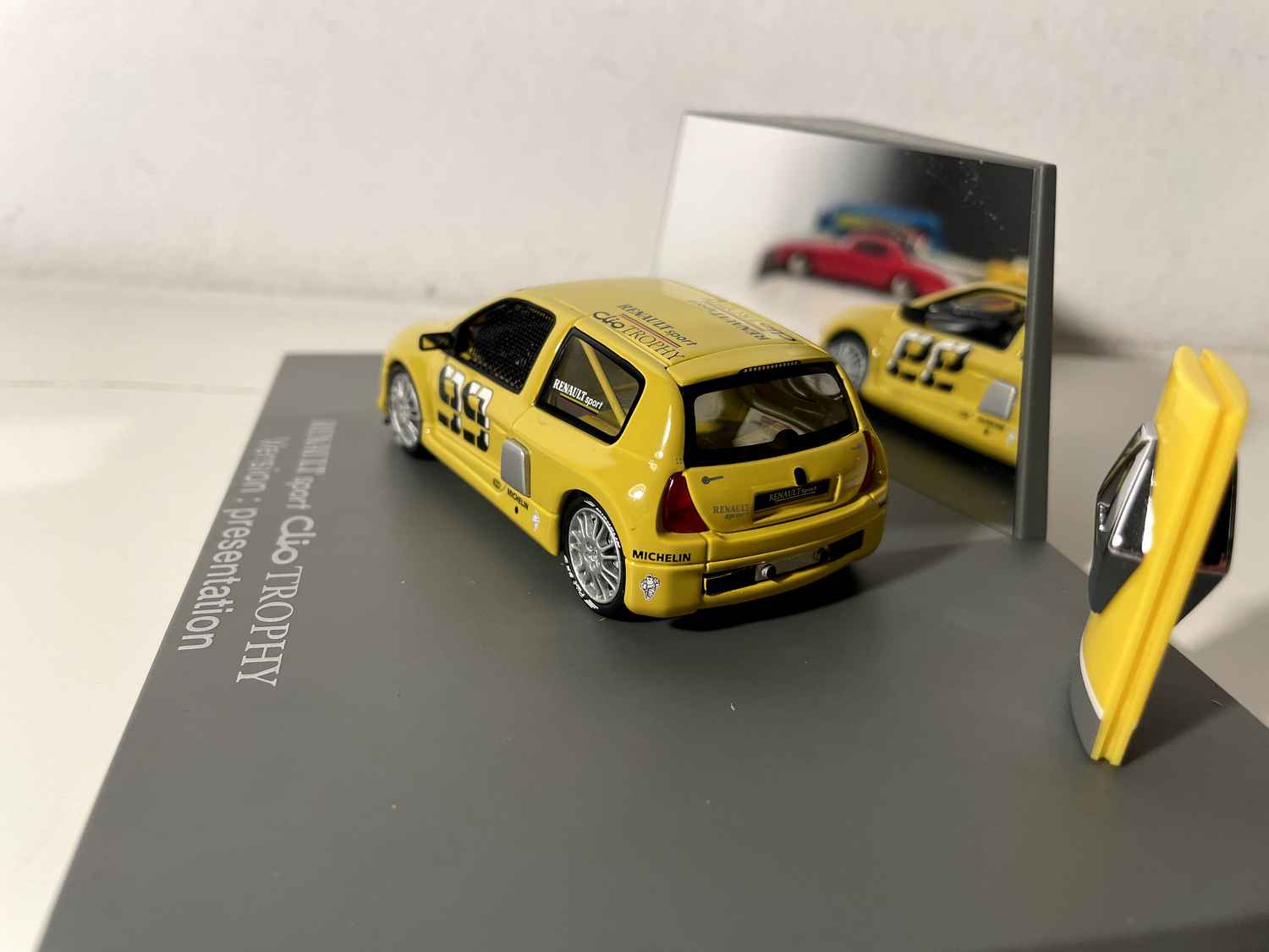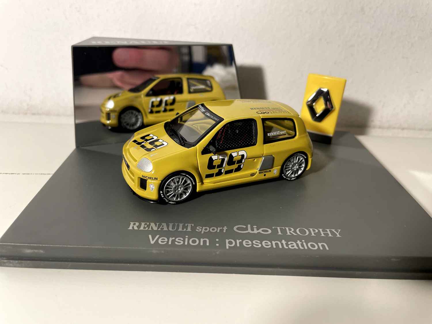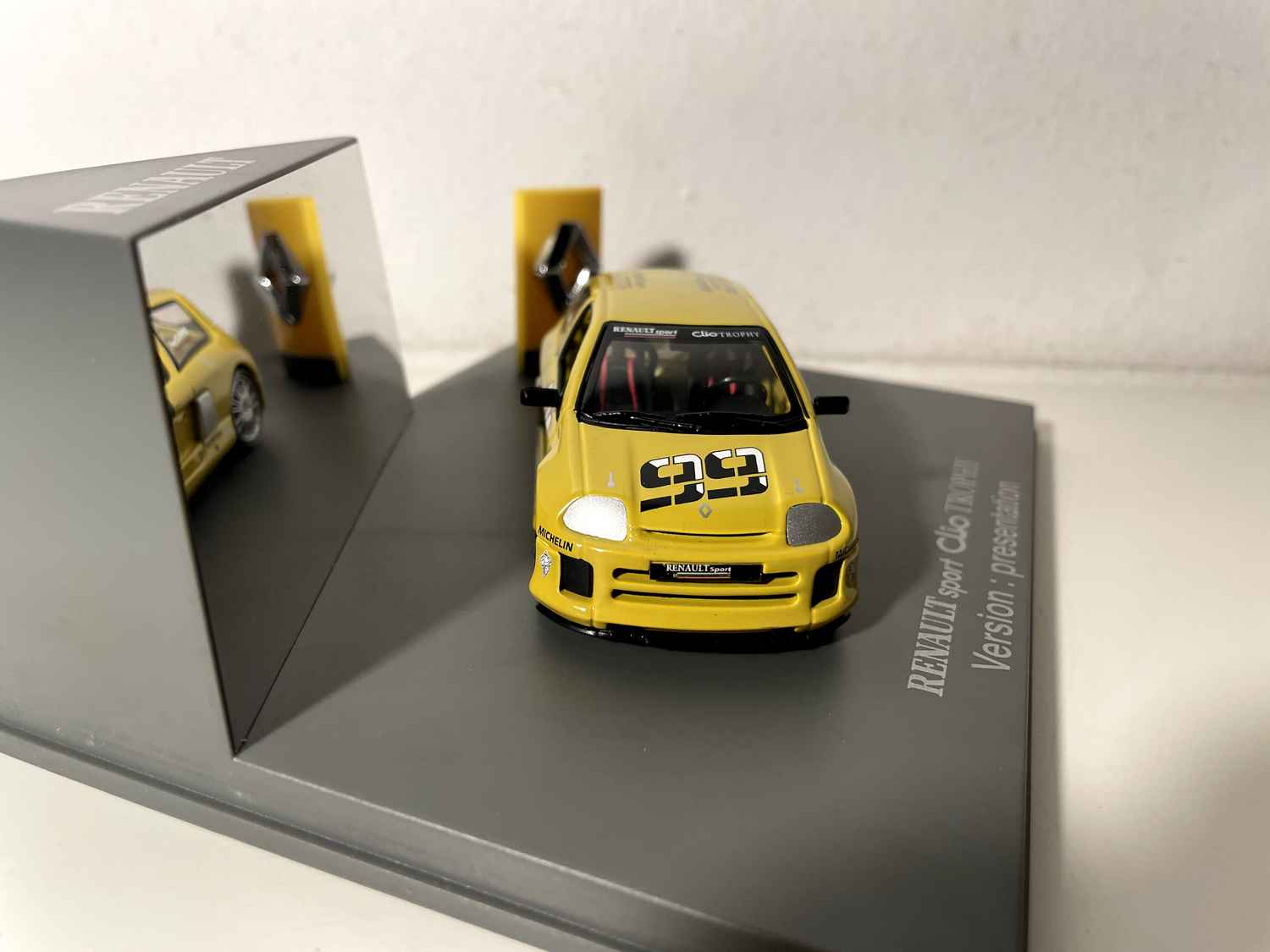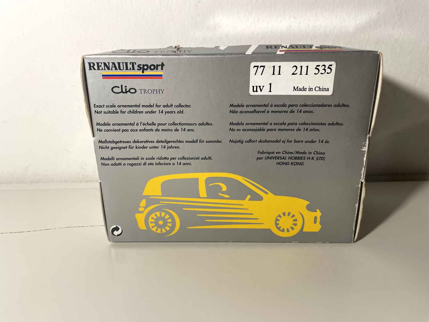 Voiture Miniature Renault Sport Clio Trophy jaune numéro 99 version: présentation (coffret boite rectangle) - Universal Hobbies