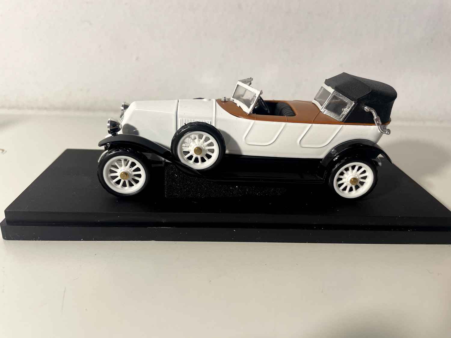 Les collectionneurs passionnés d'histoire automobile apprécieront particulièrement cette pièce au sein d'un ensemble consacré aux voitures anciennes. Elle dialogue harmonieusement avec d'autres modèles de l'époque, qu'ils soient issus des collections RIO ou d'autres fabricants spécialisés dans la reproduction fidèle des automobiles d'exception. Cette miniature séduira autant les néophytes découvrant l'univers des miniatures au 1/43ème que les collectionneurs confirmés en quête de pièces rares témoignant du raffinement des cabriolets d'antan.