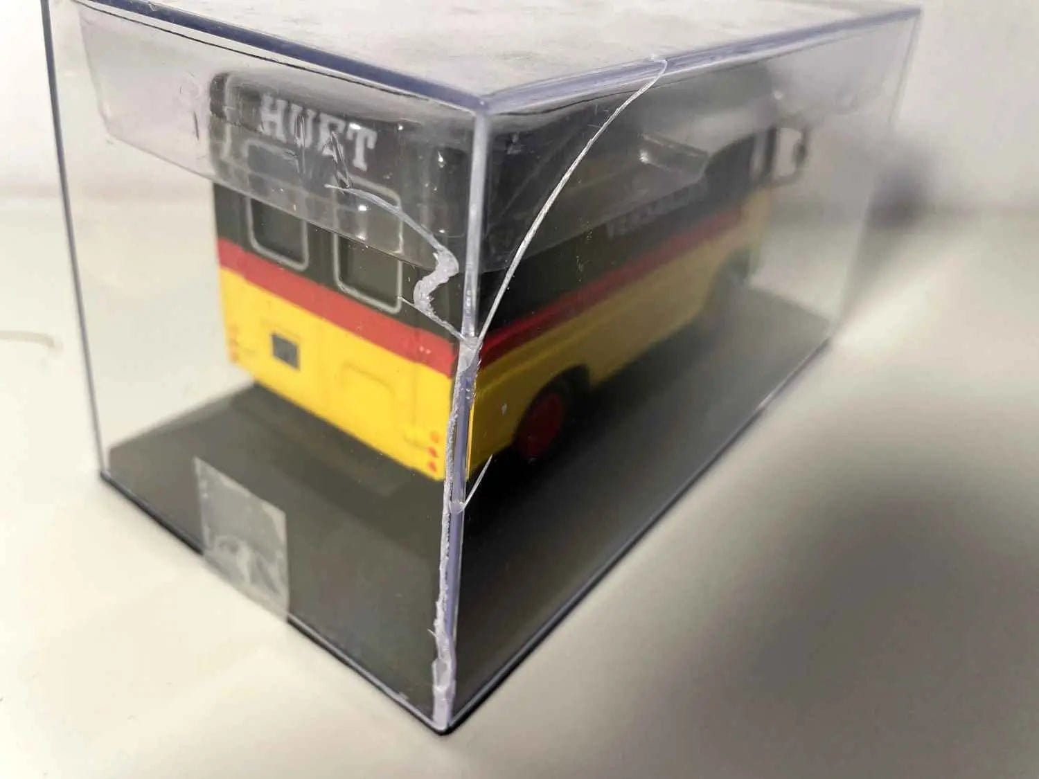 Boite plexi ternie et usagée et cassée à l'arrière (sur tte hauteur)