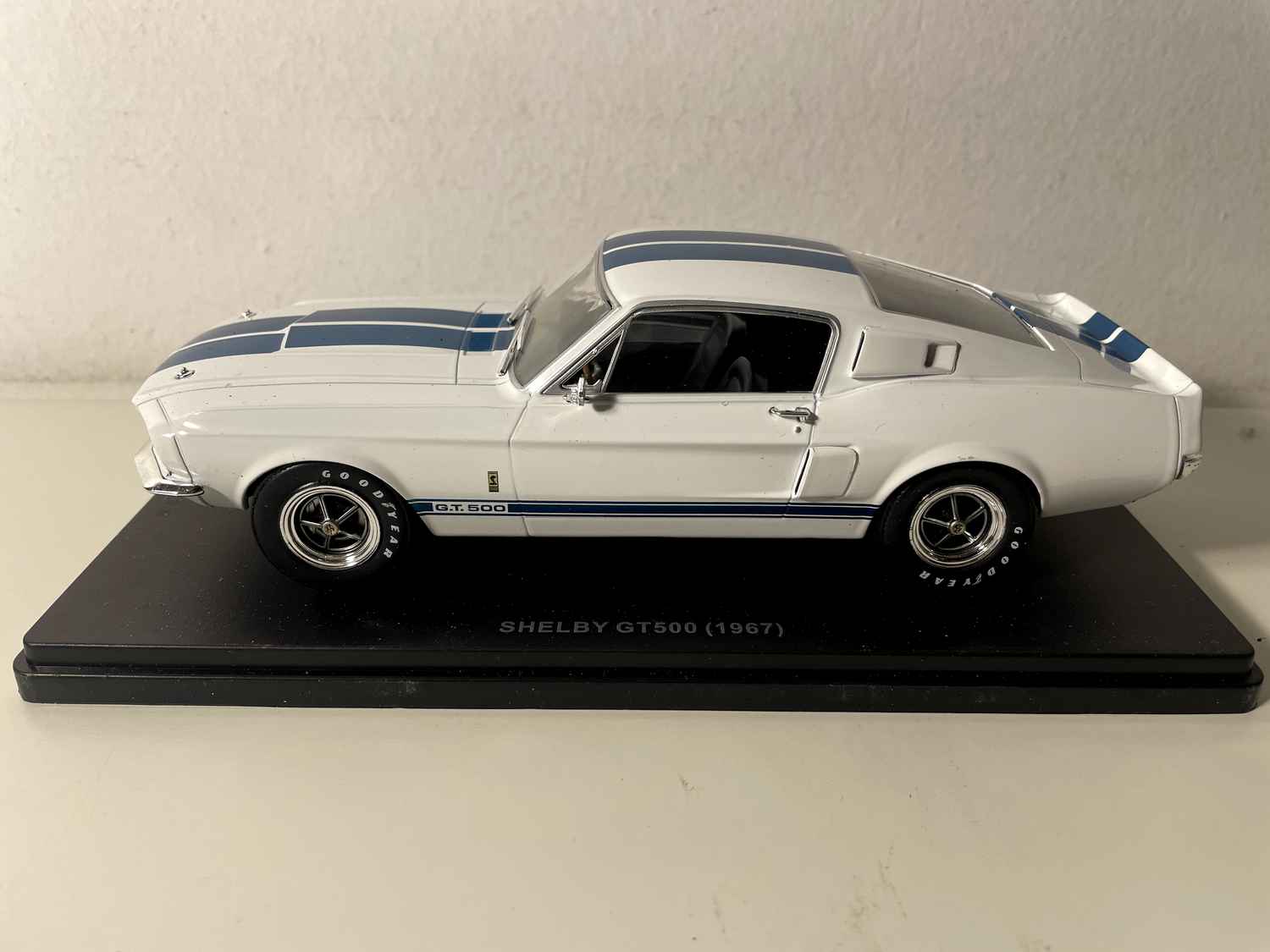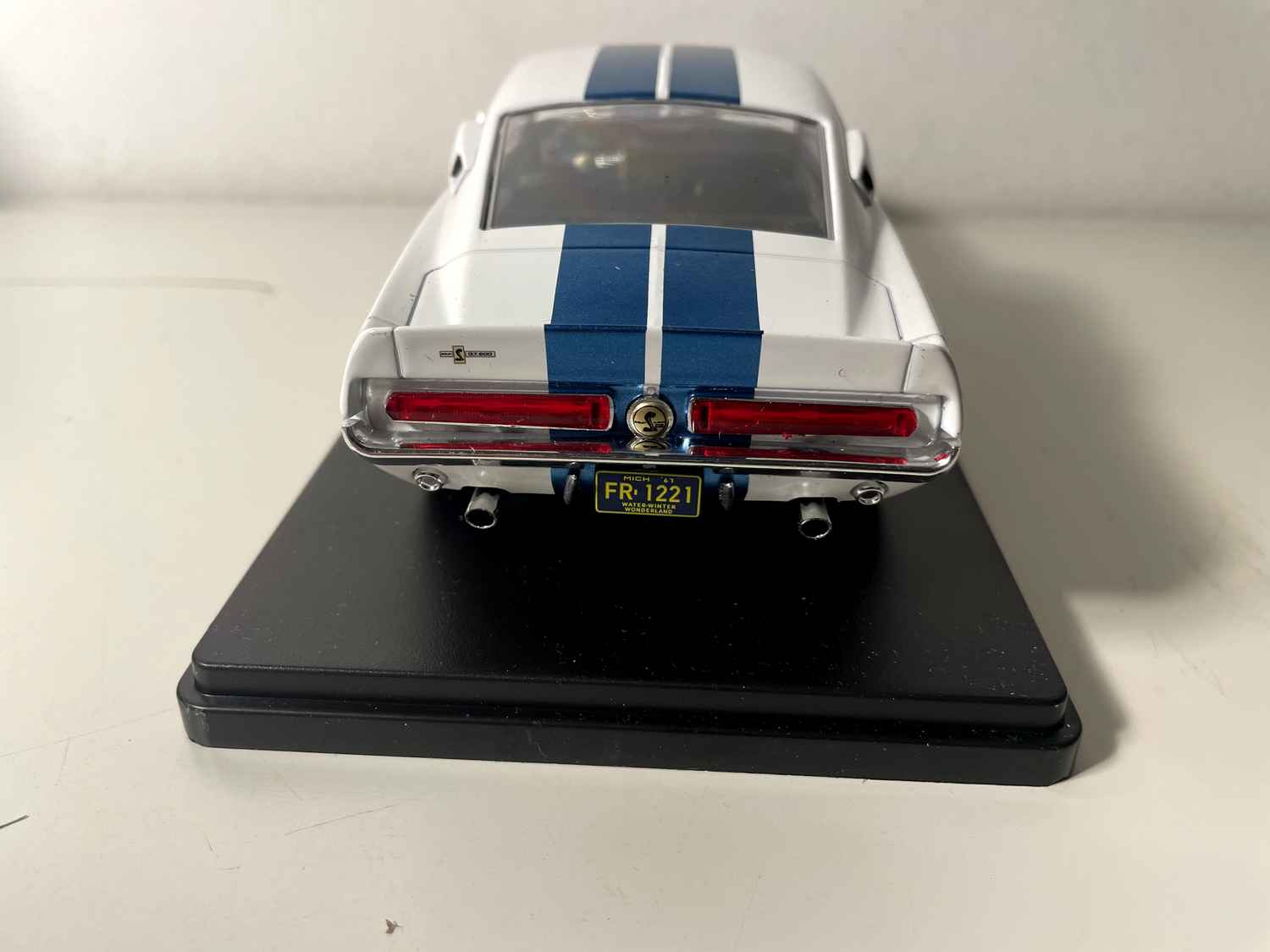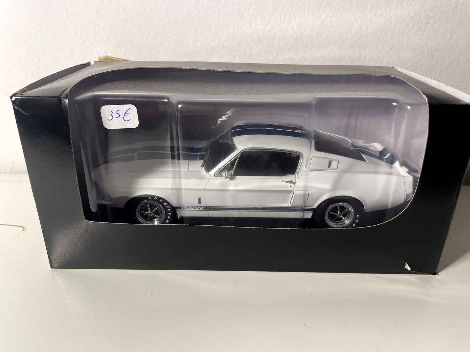Voiture Miniature Shelby GT500 blanche et bleue de 1967 (Echelle: 1/24ème)